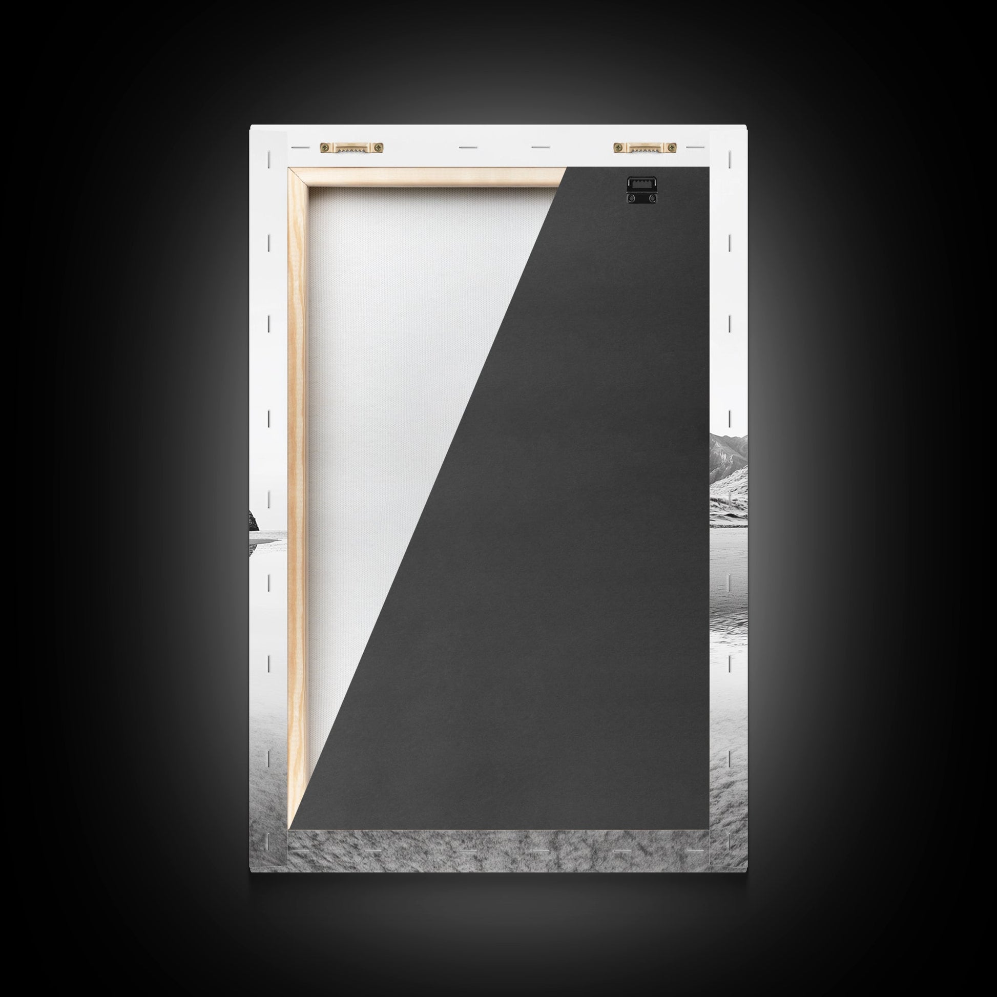 Mountain Mirror, Coastal Peak, Serene Beach, Canvas Print, Minimalist Landscape Art, Modern Living Room Wall Decor, Monochrome Nature Style