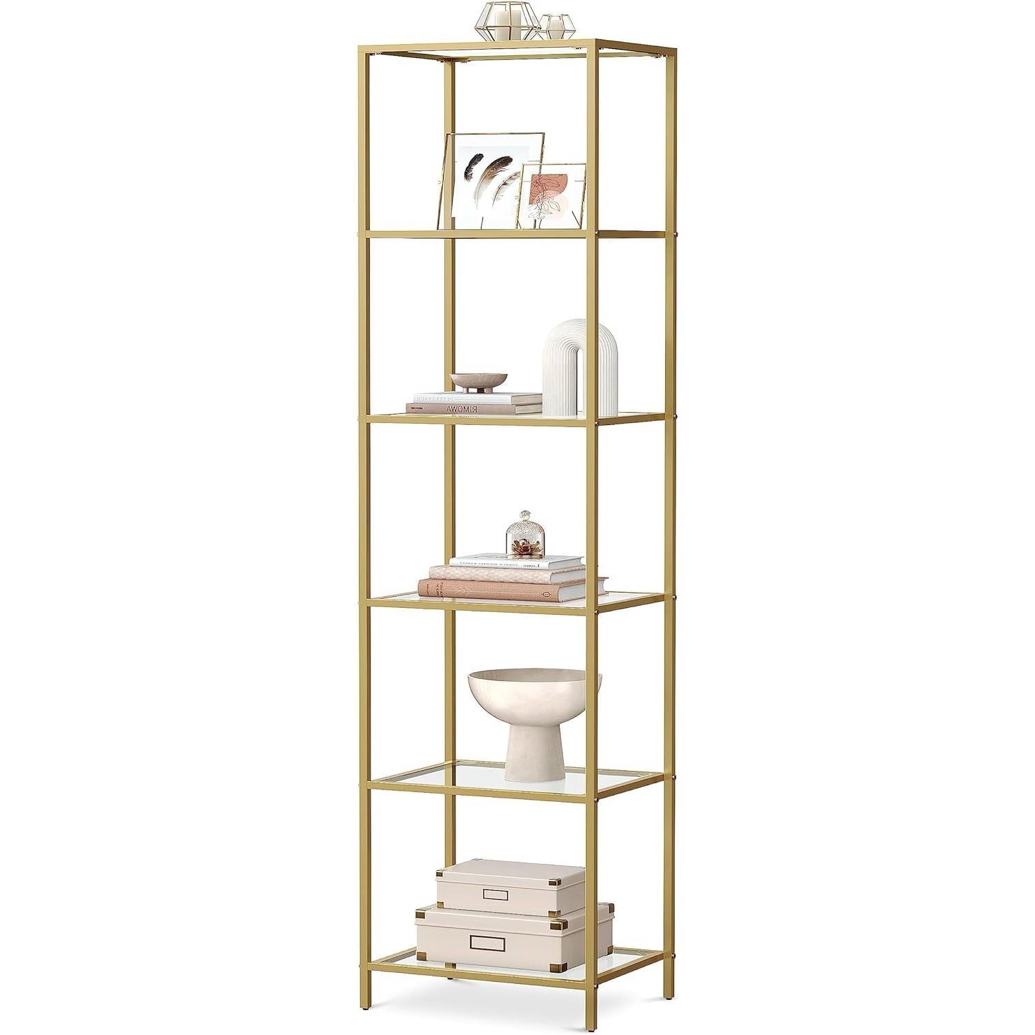 - Narrow Glass Shelf Bookcase Bedroom Living Office Bath Storage Unit in Gold
