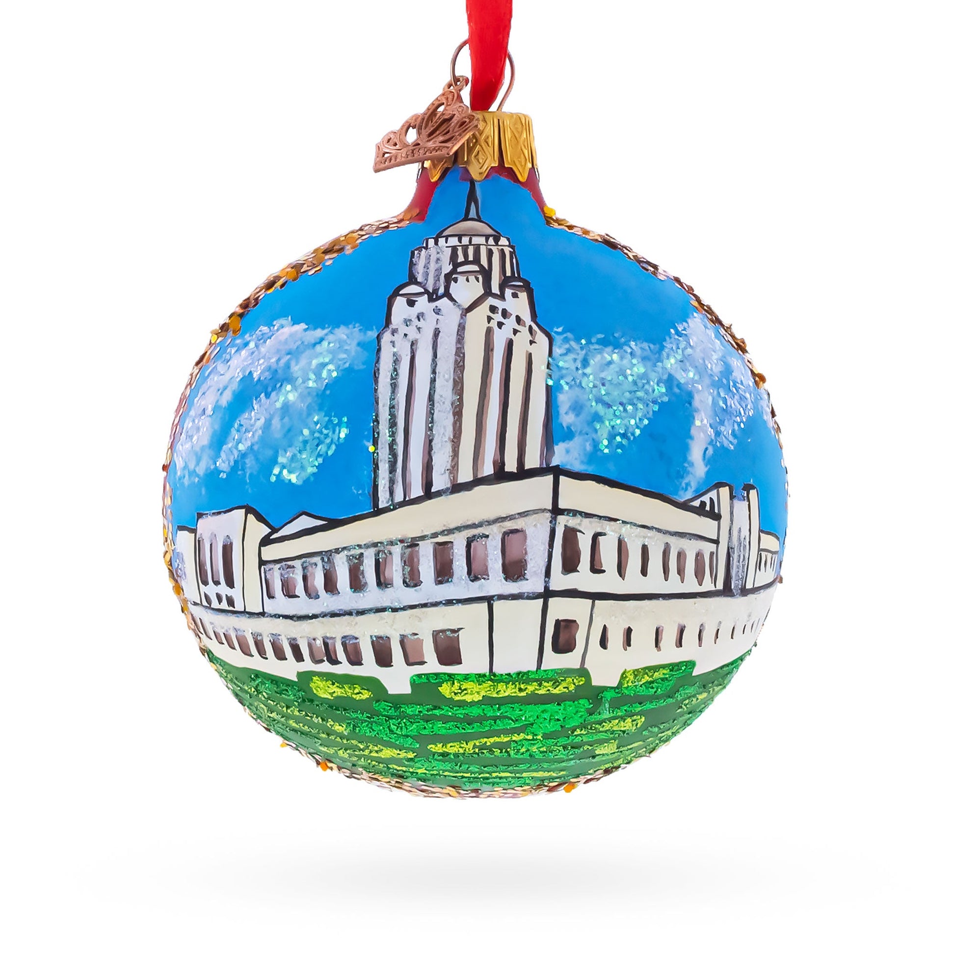 Nebraska State Capitol, Lincoln, Nebraska, USA Glass Ball Christmas Ornament 3.25 Inches