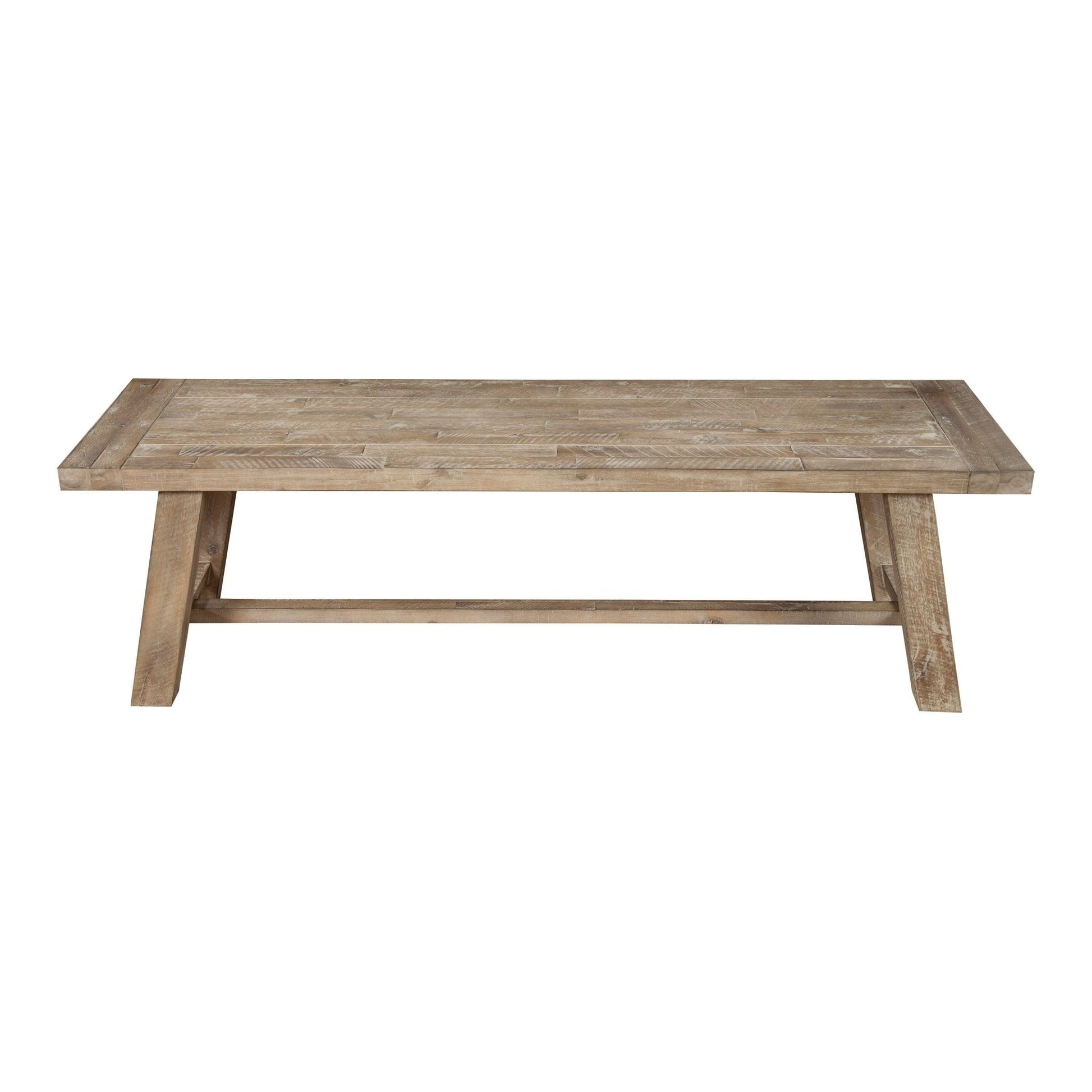 A beautiful Weathered Natural wood finish brings rustic elegance to your dining room with the Newberry Dining Bench. Using sustainable wood resources, this bench is constructed with Acacia wood and built with angled legs at its base for both aesthetic appeal and stability. Designed with hosting in mind, you can purchase the Newberry dining table which is styled well with a combination of parson side chairs and 3 drawer/3 door Sideboard, to complete the room setting. The Newberry dining bench provides extra seating as well as eclectic styling to your home.