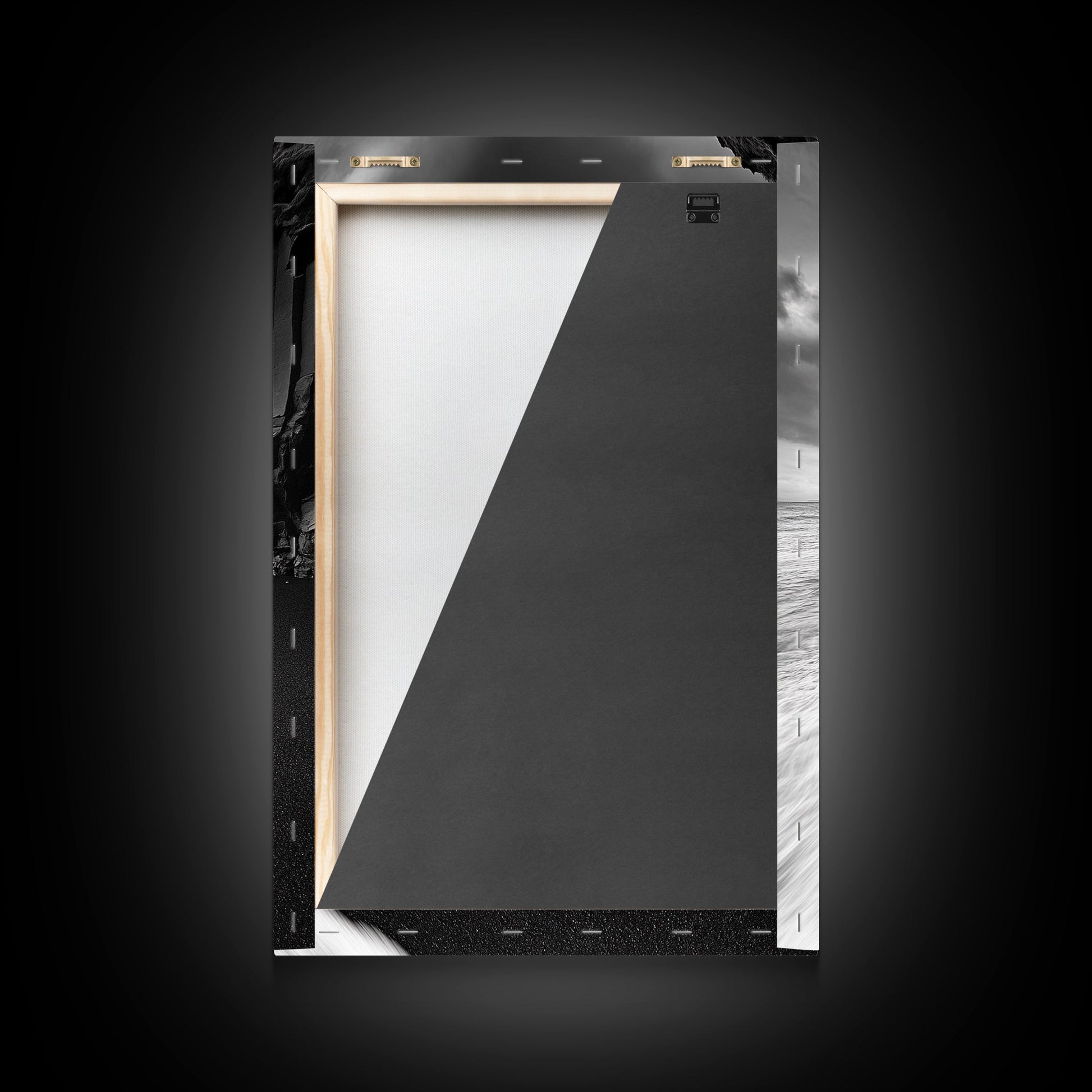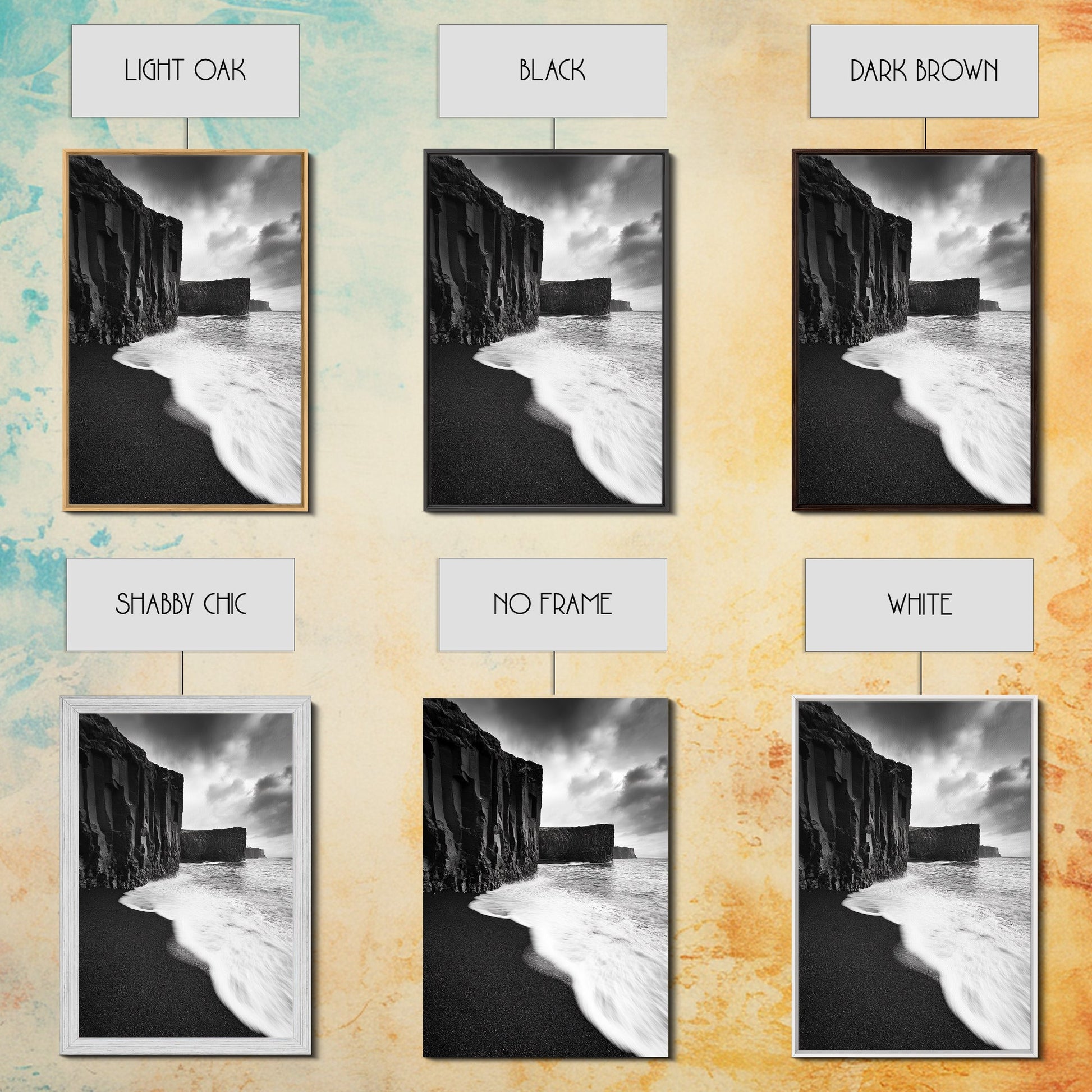 Ocean Cliffs, Black Sand, Moody Coast, Rugged Shoreline, Framed Canvas Print, Icelandic Wall Art, Adventure Decor, Modern Nature Art