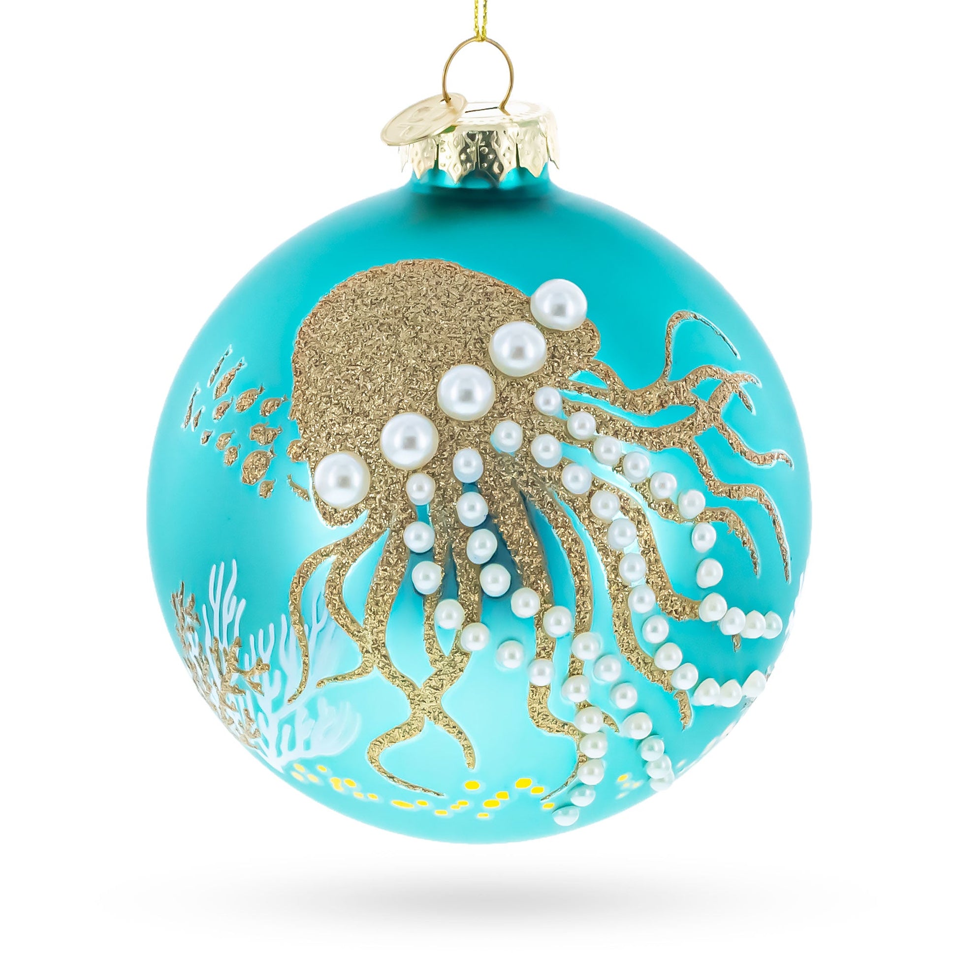 Ocean Jellyfish and Coral Teal Glass Ball Christmas Ornament