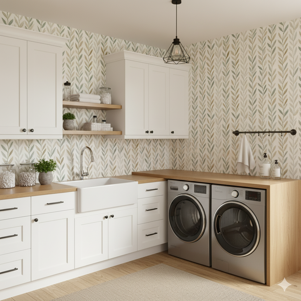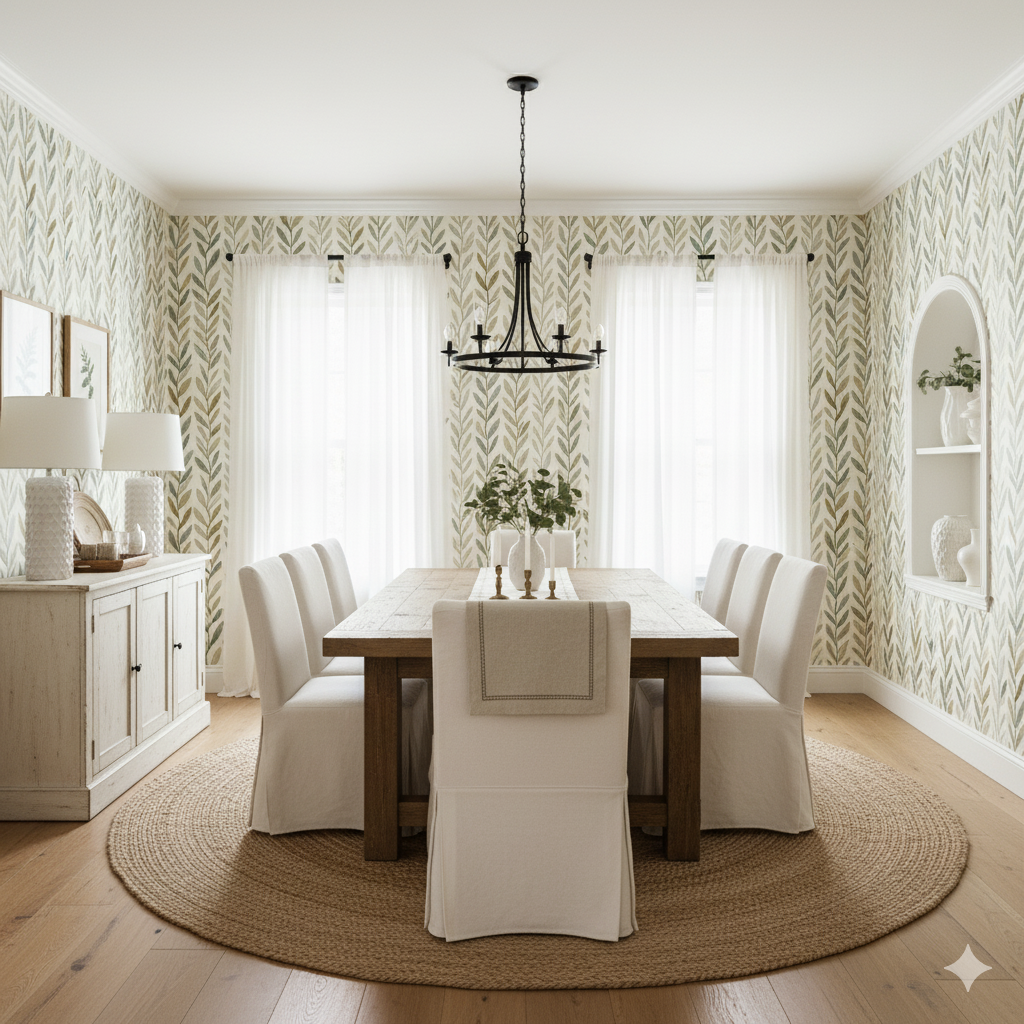 Olive Lineage intertwines stylized olive branches in neat vertical rows, painted in refined shades of jade, gold-olive, and soft taupe. The rhythmic foliage gives a sense of calm structure, ideal for Mediterranean kitchens, entryways, or organic-modern interiors with a nod to tradition.