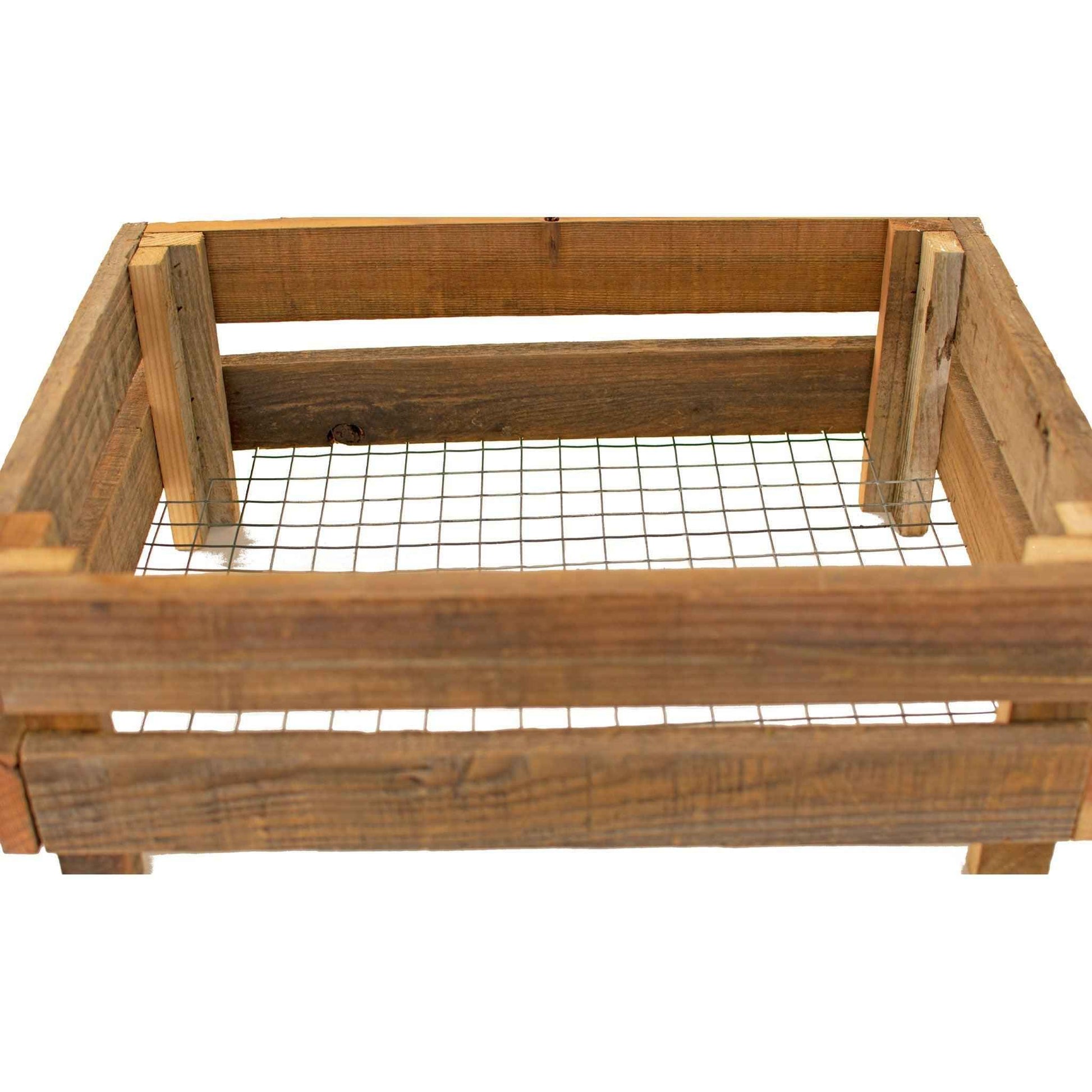 We craft this wooden planter using redwood fencing posts gathered locally in the Bay Area, CA. We treat the wood and clean each post before cutting to exact size and staple together. Each box is made by hand from our craft engineers. We use chicken wire for the floor bed.