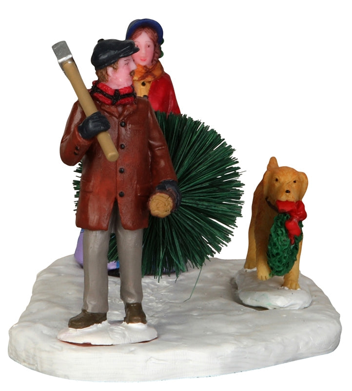 Celebrate the magic of the season with the charming Our First Christmas Tree village accessory! This delightful scene captures the heartwarming moment of a couple embarking on a festive adventure to bring home the perfect Christmas tree. Standing at approximately 3.03 inches tall, the husband carries the tree cheerfully on his shoulder, while the wife, radiant in her festive attire, holds a beautiful wreath adorned with a bright red bow. Their adorable dog adds an extra touch of joy, happily participating in the family tradition.