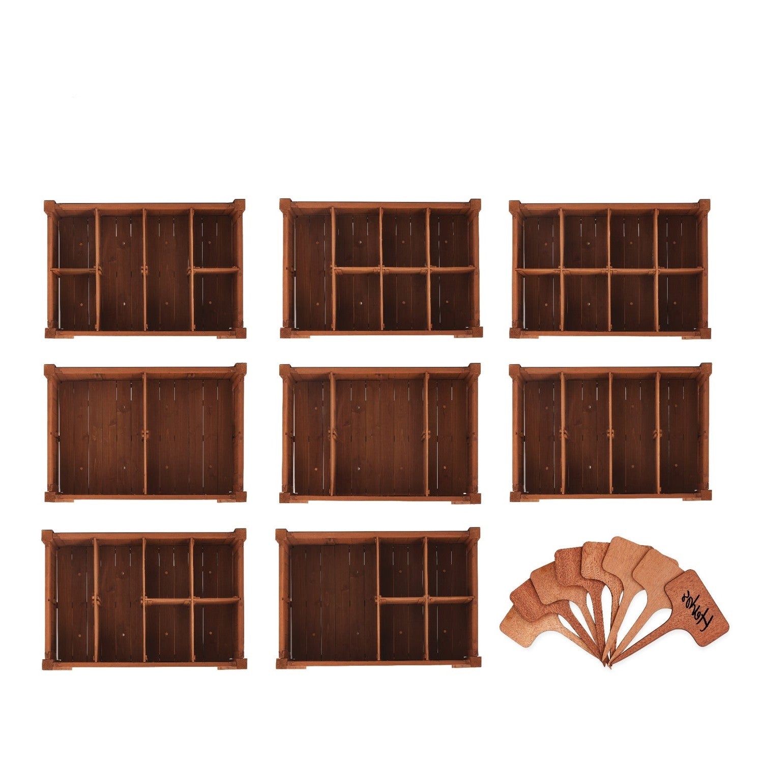 Grow thyme anywhere with this Customizable Elevated Fir Wood Wheeled Planter Garden! Made with stain-resistant fir wood. Each pocket includes a liner and drainage hole that allows excess water to drain out, helping prevent root breakdown and oversaturation while keeping the soil fresh. Stands 32 inches tall, making it perfect for those who may struggle to bend down while gardening. Enjoy a variety of ways to grow your favorite herbs and plants in individual compartments, easily identifying and labeling each with the included plant markers. Built with a set of locking wheels to move the planter from place to place or to simply capture the right amounts of sun/shade.
