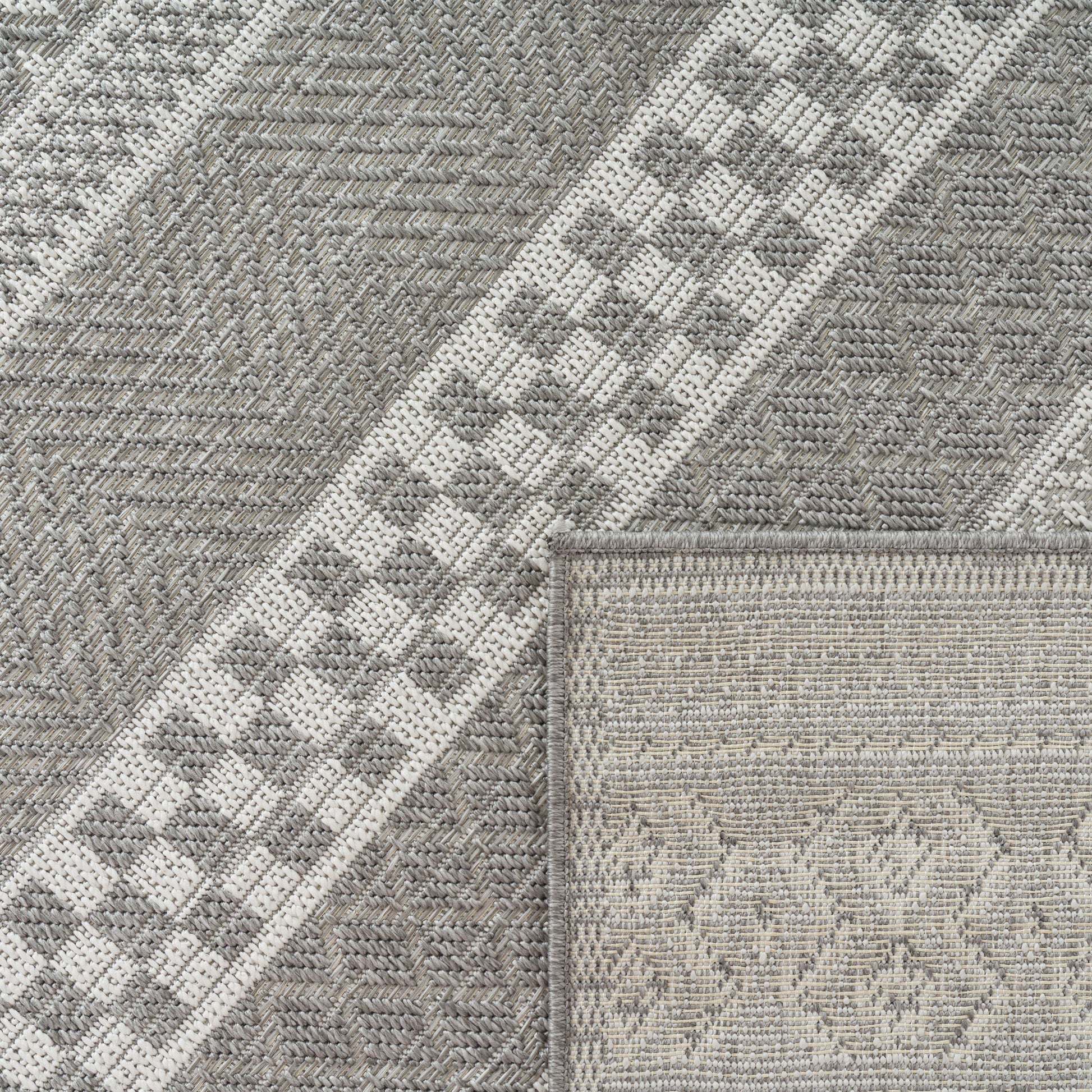 Outdoor Rug Vermont Modern Boho Ornaments in White Grey