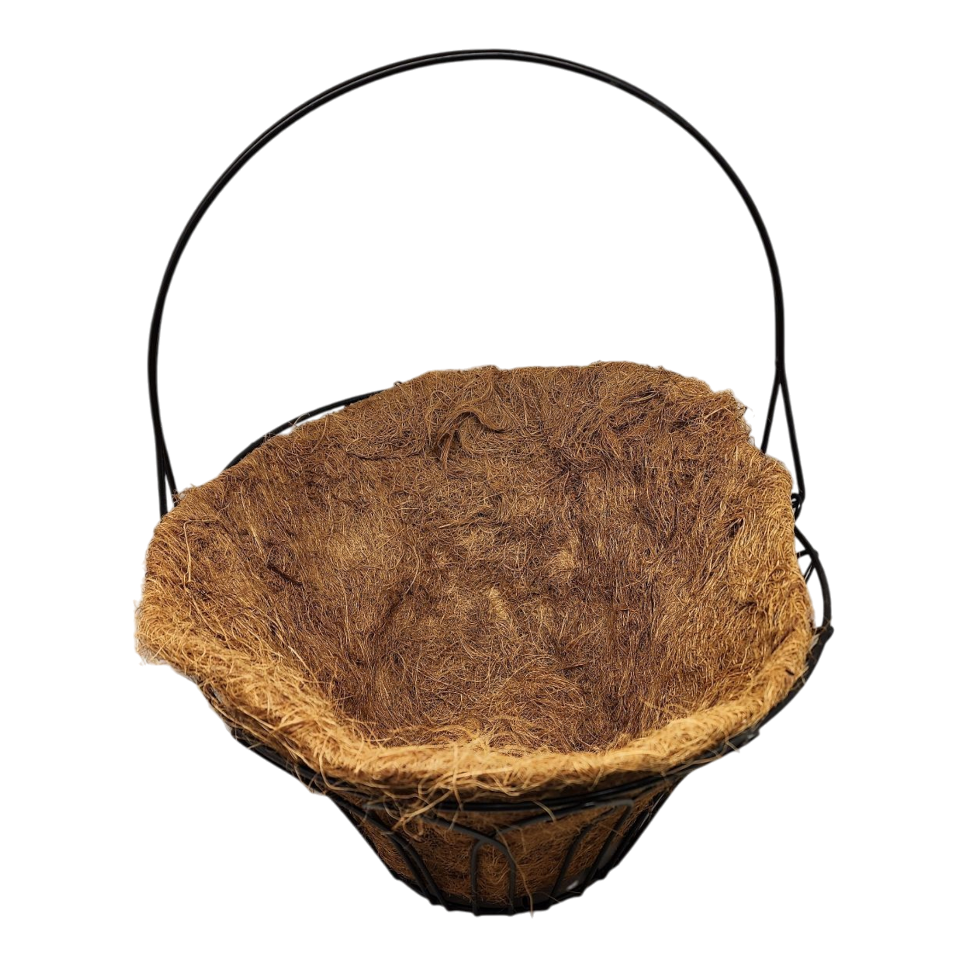 - 15-Inch Long Oval Black Metal Wire Handle Basket with Coco Mat Liner