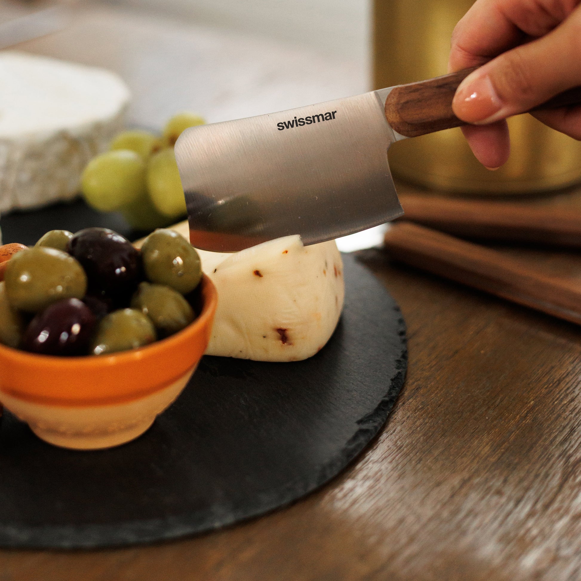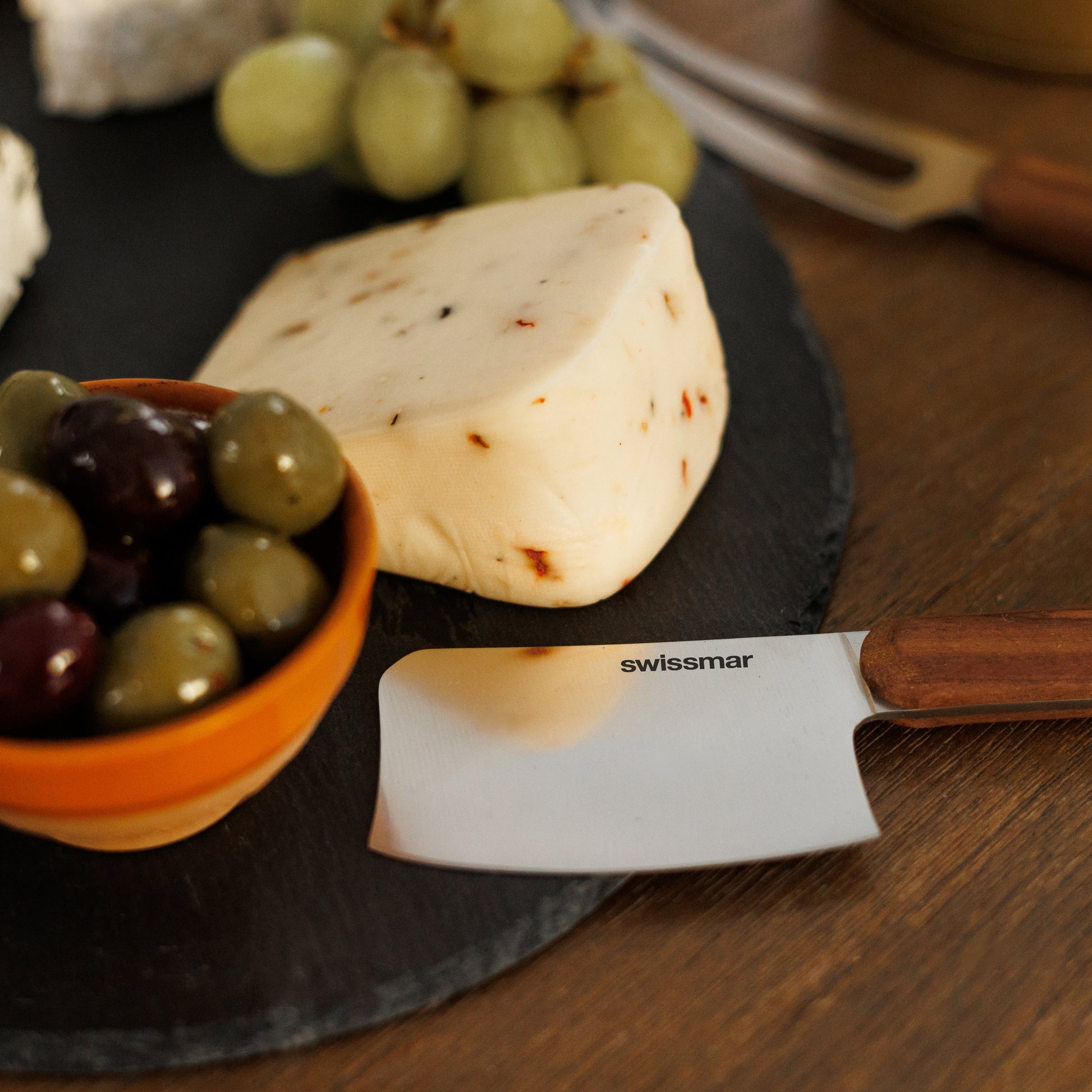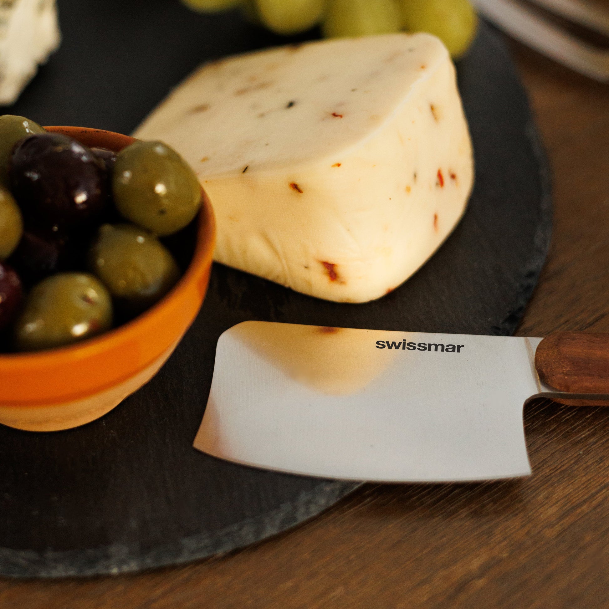 Formed with fine-grained shale and volcanic ash, this natural slate board offers a timeless and elegant serving solution. Each piece is unique, showcasing its own markings, lines, and colour variations, making it a one-of-a-kind addition to your table. The smooth, non-porous surface with hand-crafted edges provides a distinctive backdrop for cheese, appetizers, or desserts, while non-skid felt pads on the bottom protect your surfaces.