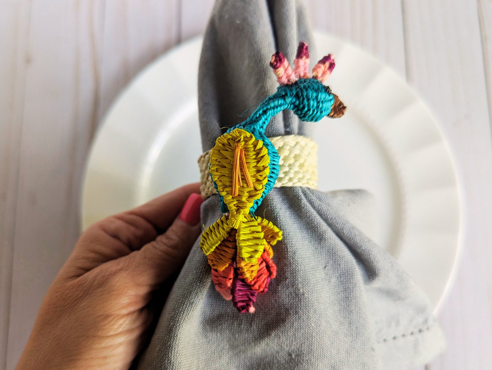 Peacock Handwoven Iraca Napkin Ring