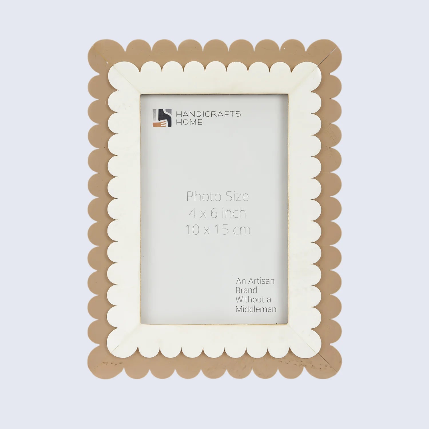 Add a touch of artisan charm to your space with the Handicrafts Home Picture Frames, handcrafted with precision and care. Featuring a distinctive scallop pattern made from brown and white resin inlay, this elegant frame is mounted on a durable Pine MDF base.
