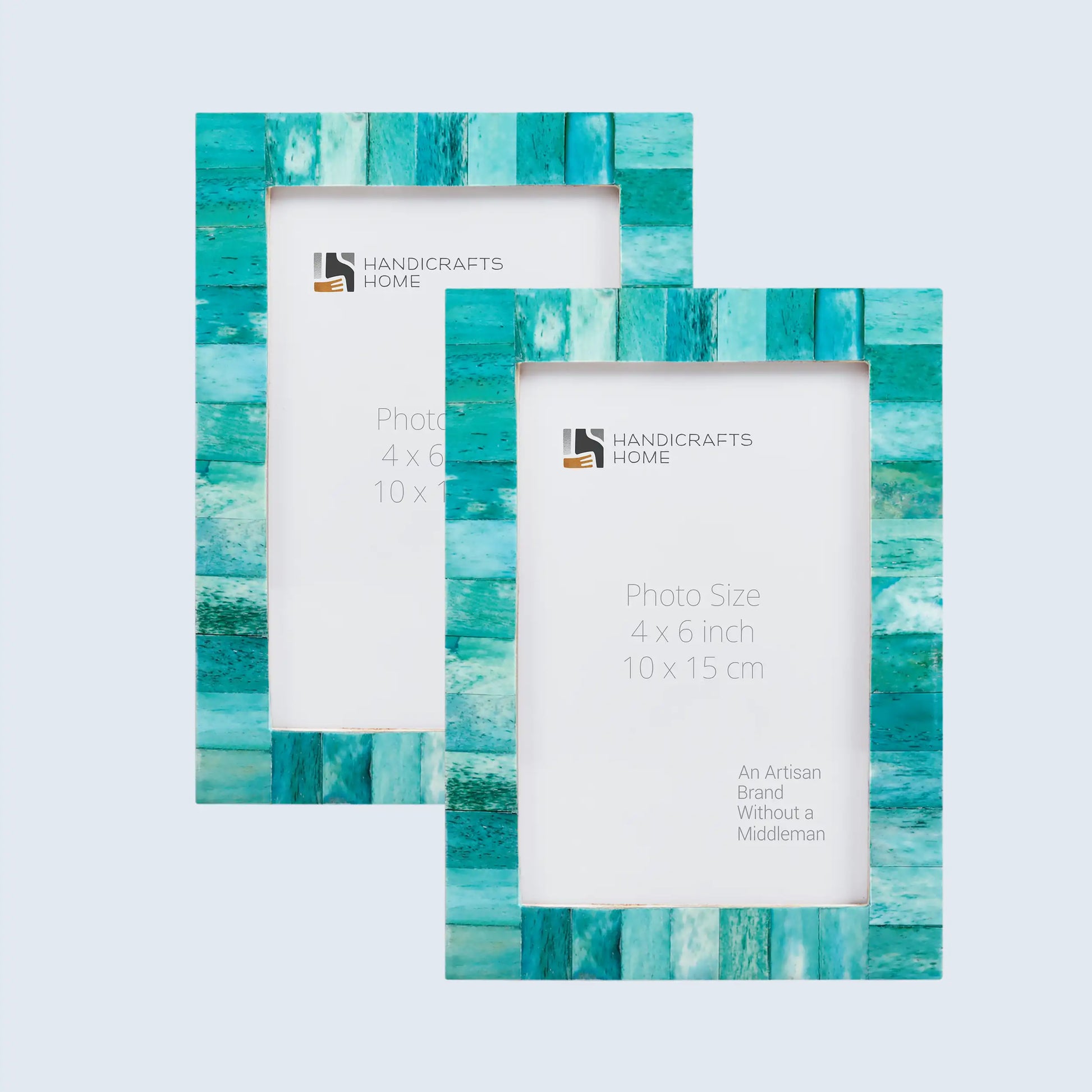 Picture Frames Classic Pattern Bone Inlay Collection in 3 Sizes, Pack of 2 - Green