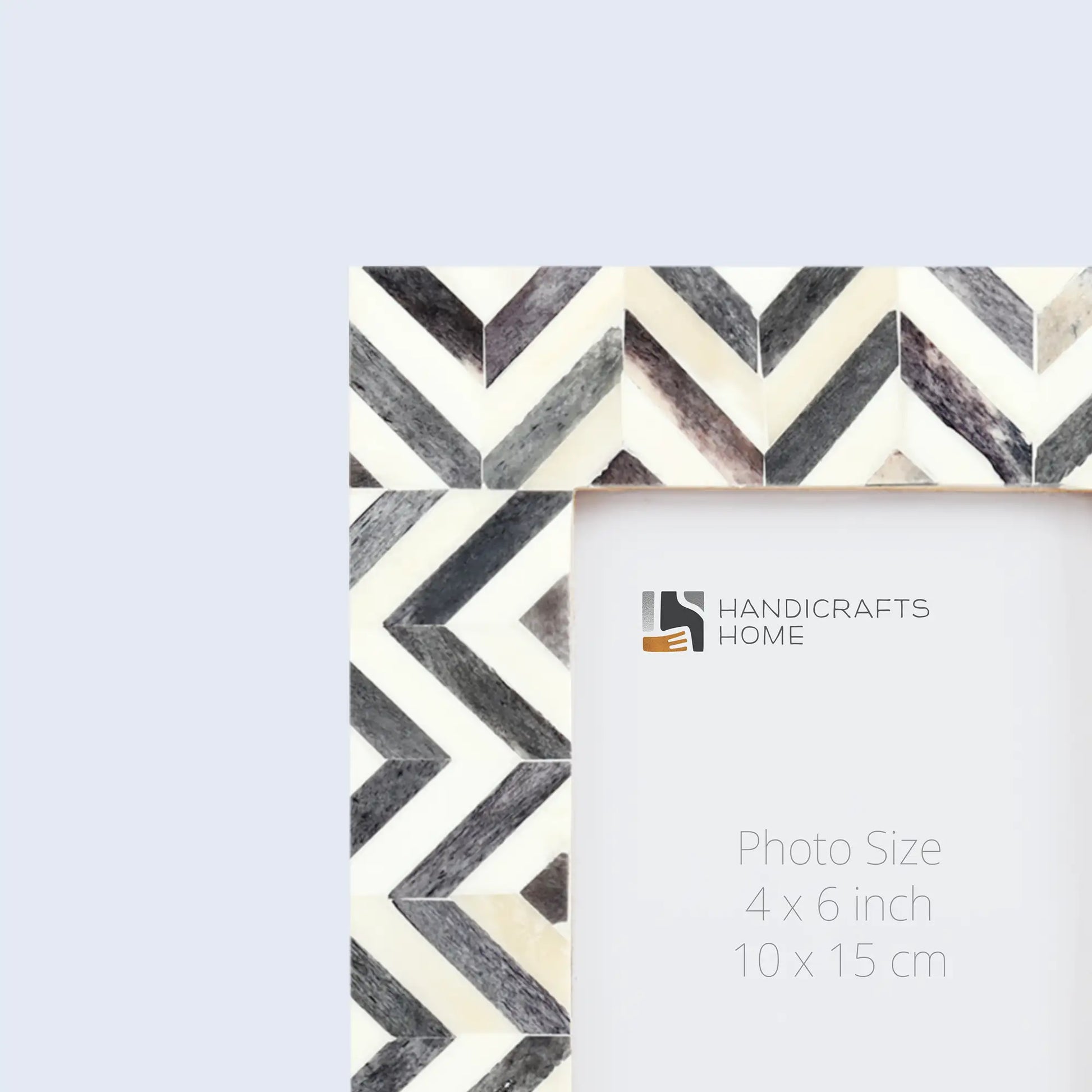 Picture Frames Herringbone Pattern Bone Inlay Collection in 2 Sizes, Grey