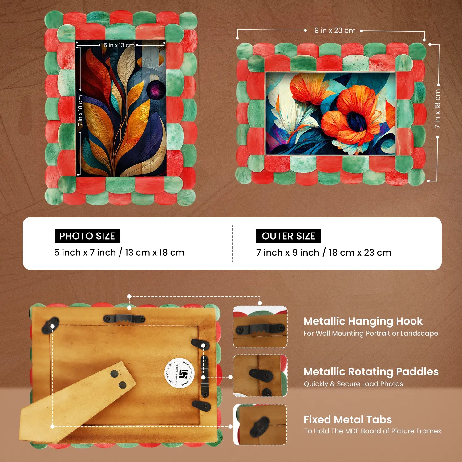 Picture Frames Scalloped Pattern Bone Inlay Collection in 4 sizes, Green & Red