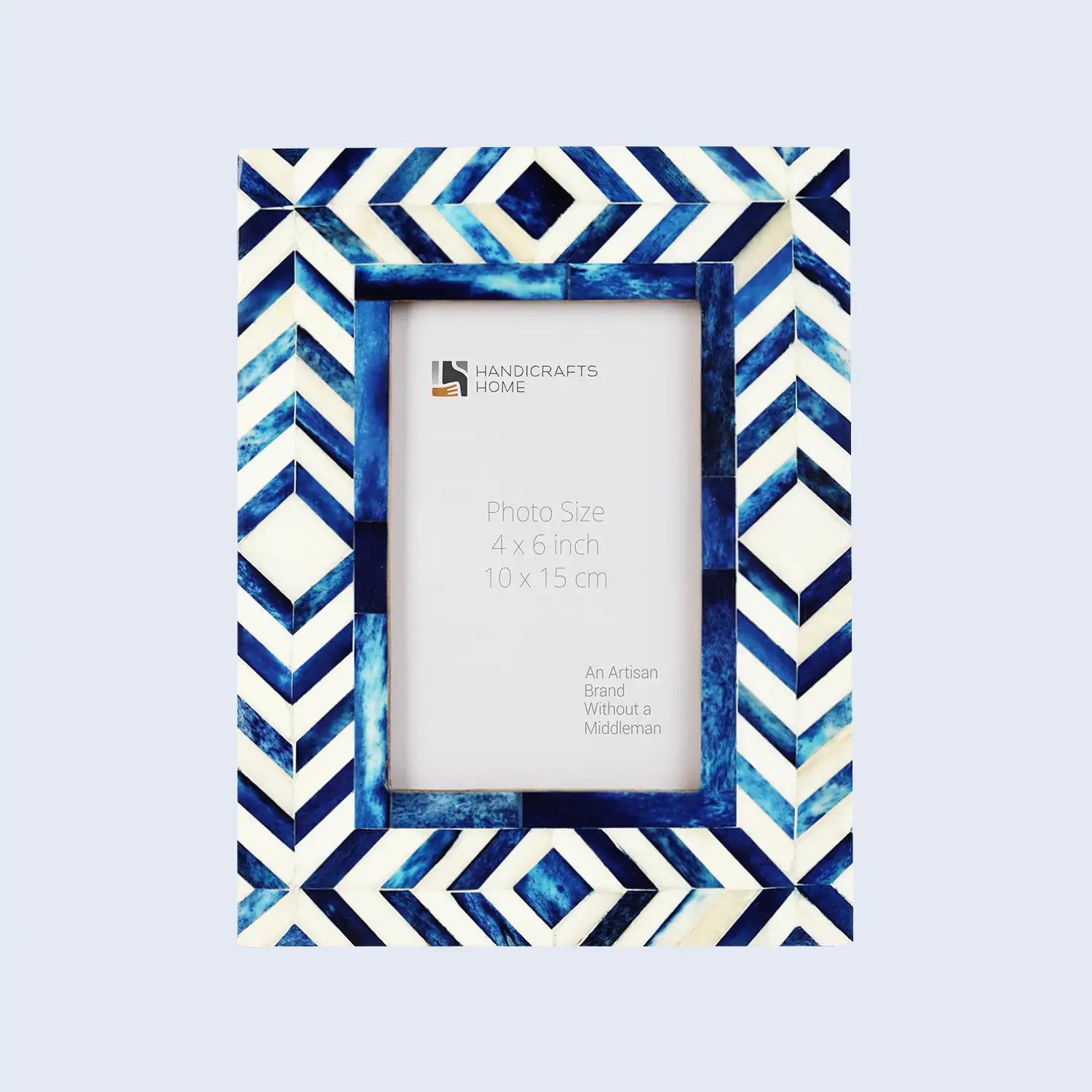 Picture Frames Taj Pattern Bone Inlay Collection in 27 Sizes, Blue