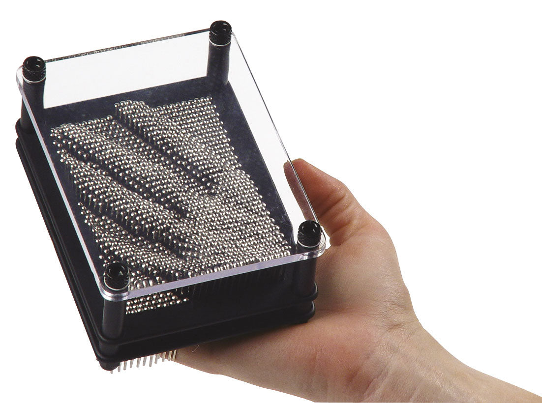 Stimulate the imagination and create three-dimensional pieces of art with Toysmith Pin Art. Pin art uses hundreds of moveable metal pins to create 3D images. The pins are fitted into a sturdy plastic frame that is both lightweight and durable. The pin art frame measures 3.8-inches by 5-inches, perfect for a bookshelf or table top. Pin art makes a great conversation piece, and is suitable for home or office. Not a toy. Adult supervision recommended.