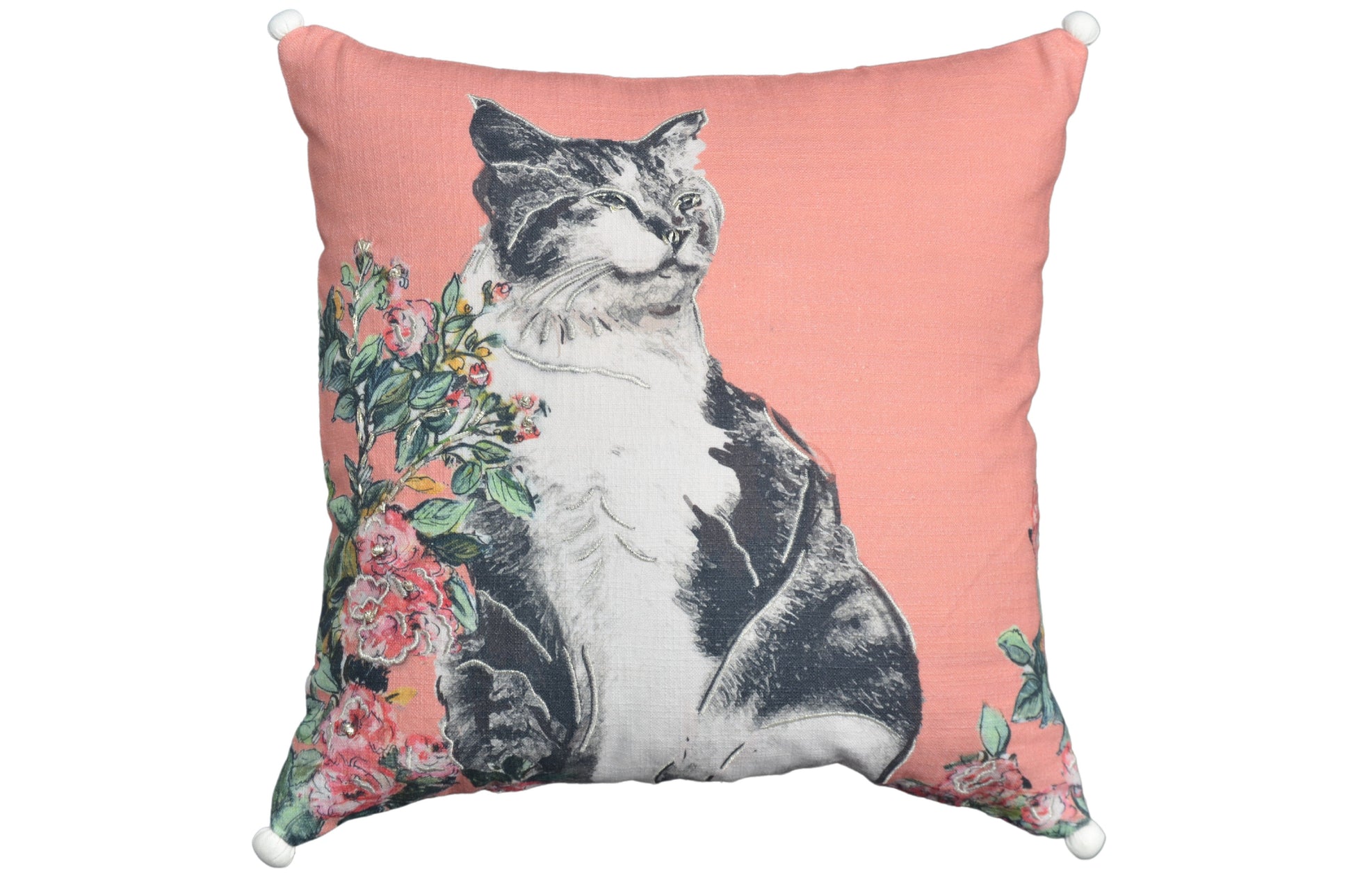 Designer 18"x18" Black Decorative Pillow. Embroidered throw pillow with Pom-poms and tassels. 100% Cotton. Natural Fiber. Includes: 1 Decorative Pillow with high quality insert. Colorful accent pillow for Indoor Use Only. Back of the pillow has solid color with no pattern. Spot Clean only. Designed in USA. Zipper Closure for easy removal of insert. Added Corner Tassels.