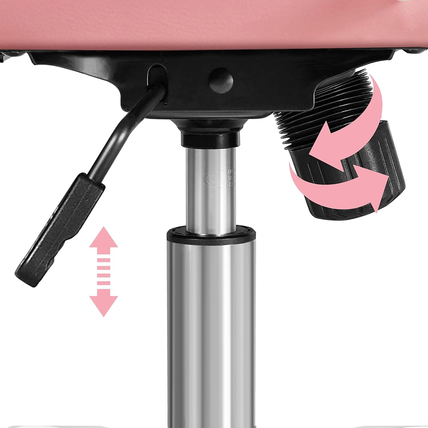 Dimensions and specs you can rely on: seat 19" x 18", backrest 19" x 23.4", overall 24.2" L x 23.6" W x 36.6–40.6" H, weight about 30.5 lb, color pink. Please remove the black plastic cap from the gas lift before installation.
