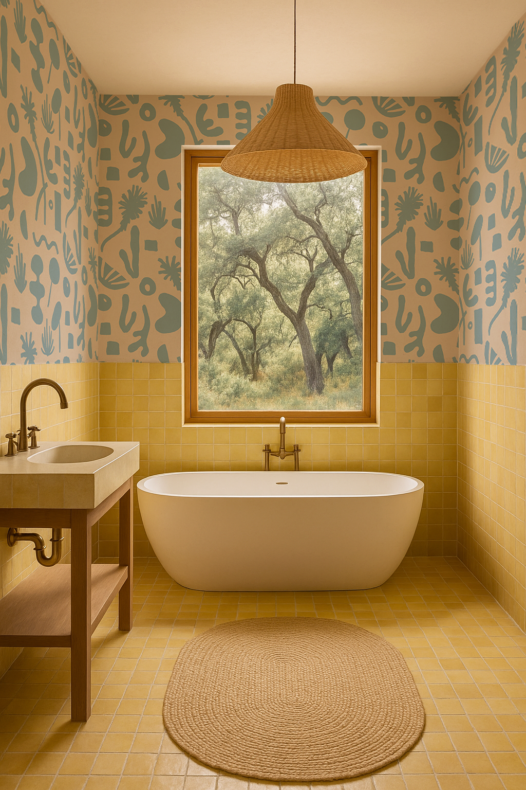 Transform your space with a splash of vacation vibes. This contemporary wallpaper by Samantha Santana was inspired by a poolside paradise in sunny Palm Springs. And with both peel and stick vinyl or traditional pasted options, installation is a breeze. Bonus: it's totally removable!