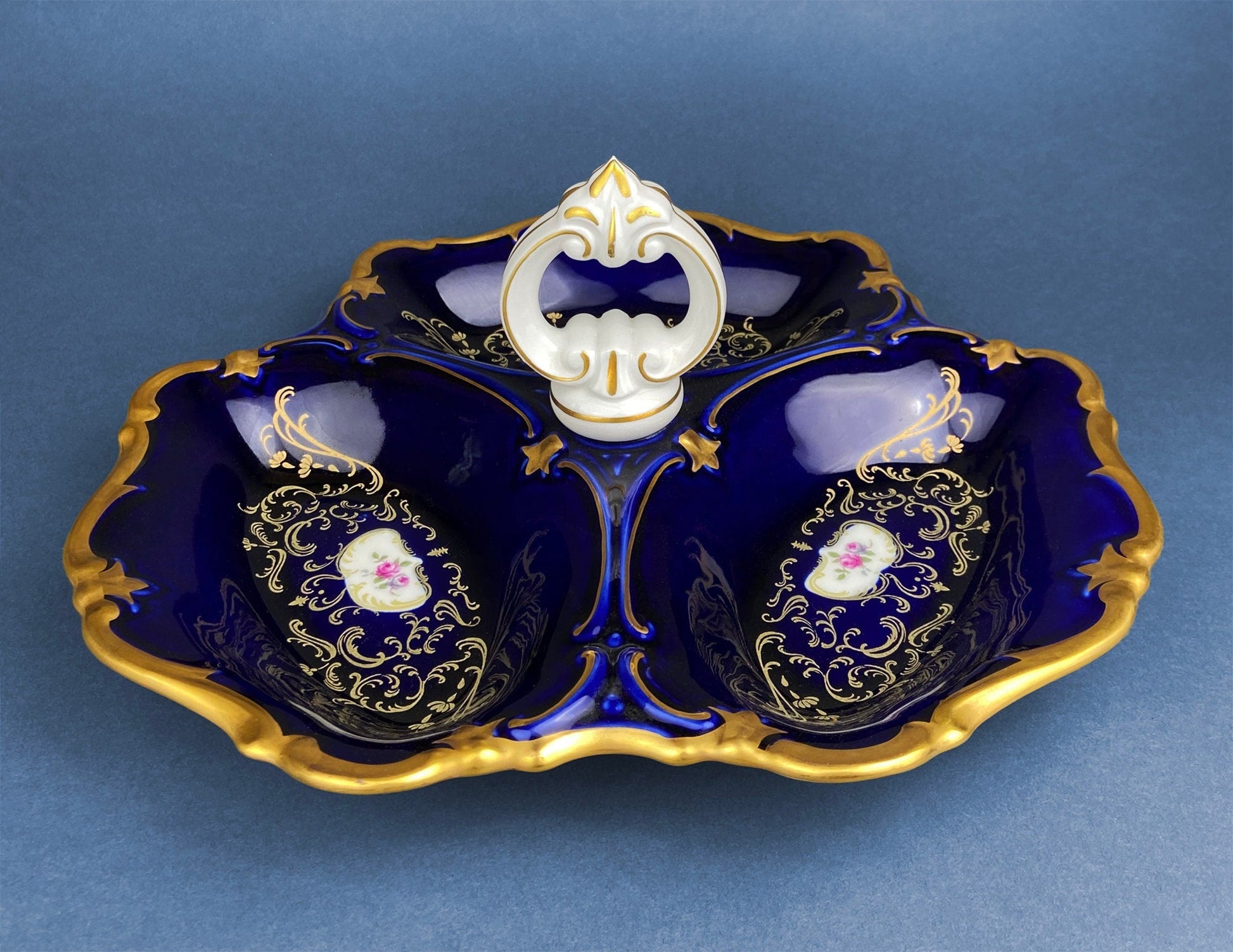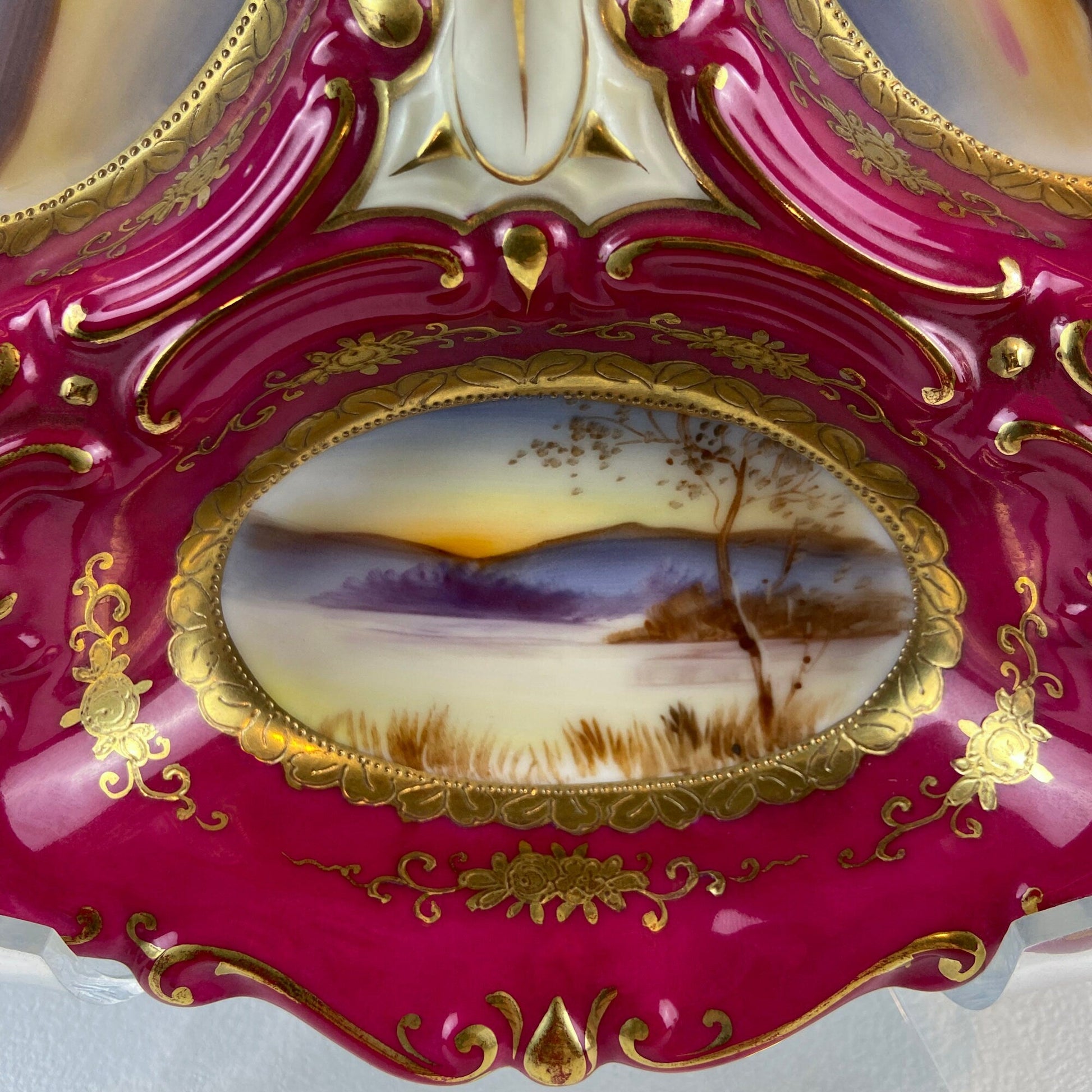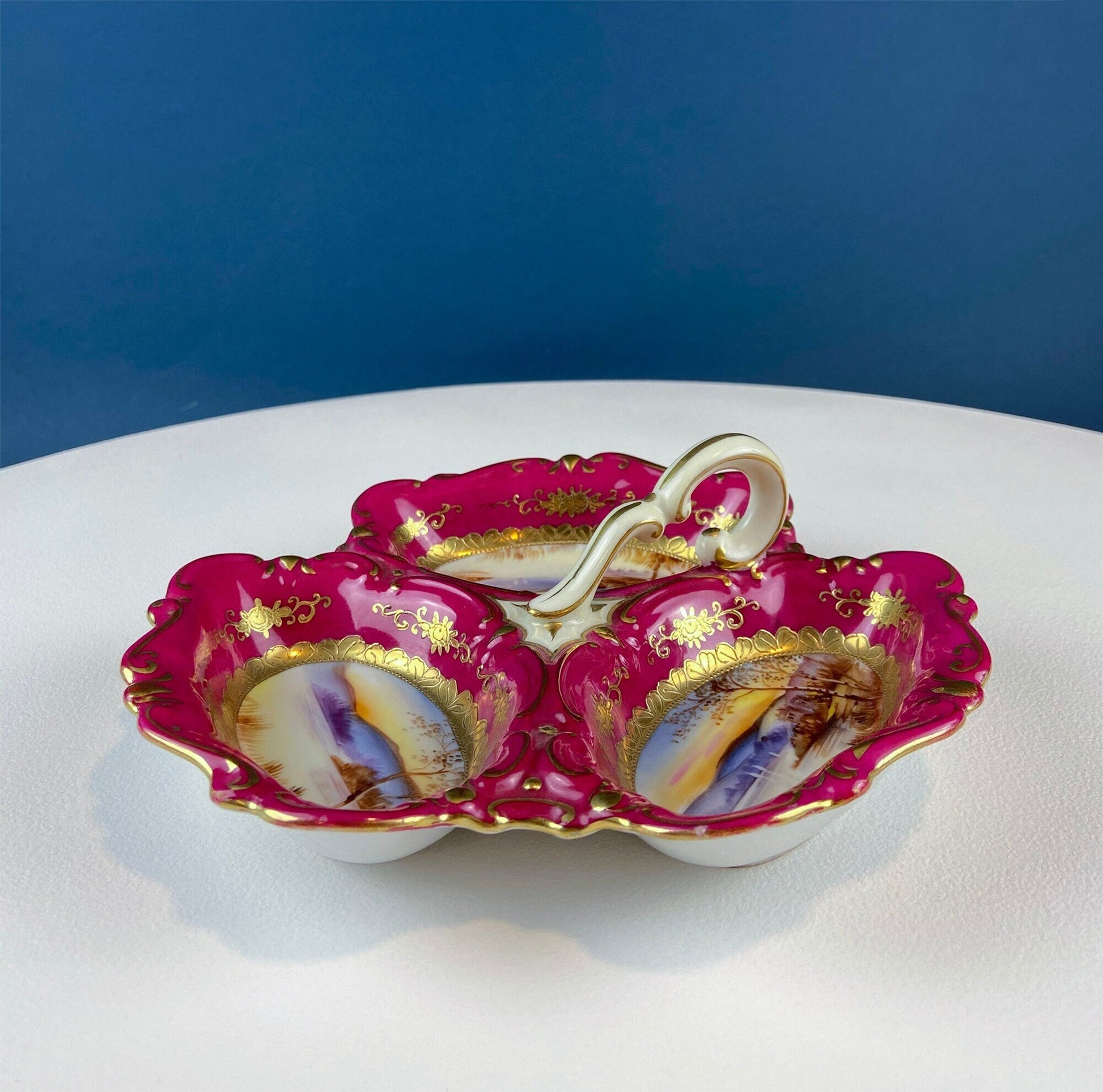 Antique 3 Part Porcelain Serving Dish. Stunning 3 Different Hand Painted Landscapes. Rare Collectible Art Dish. Divided Bowl with Handle. Home Gift. Excellent Condition. Not Marked by the Manufacturer. Most Likely, Either French or Bavarian.