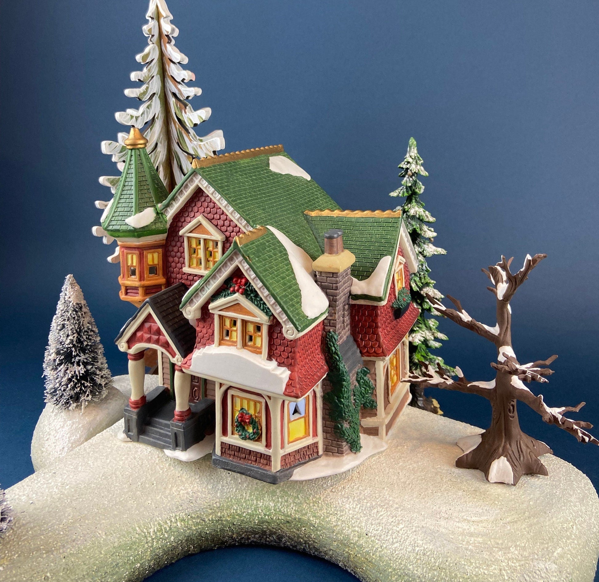 Porcelain Illuminated Red Victorian with Green Roof. Christmas Village Porcelain Building. Enchanted Holiday Decor. Home or Retail Display. Gift for Real Estate Guru, Builder, Architect, Dad, or Agent. Light Kit Included. Additional Free-standing Islands, Trees, and Accessories are not Included in the price. Excellent Condition. Not Marked by the Manufacturer.