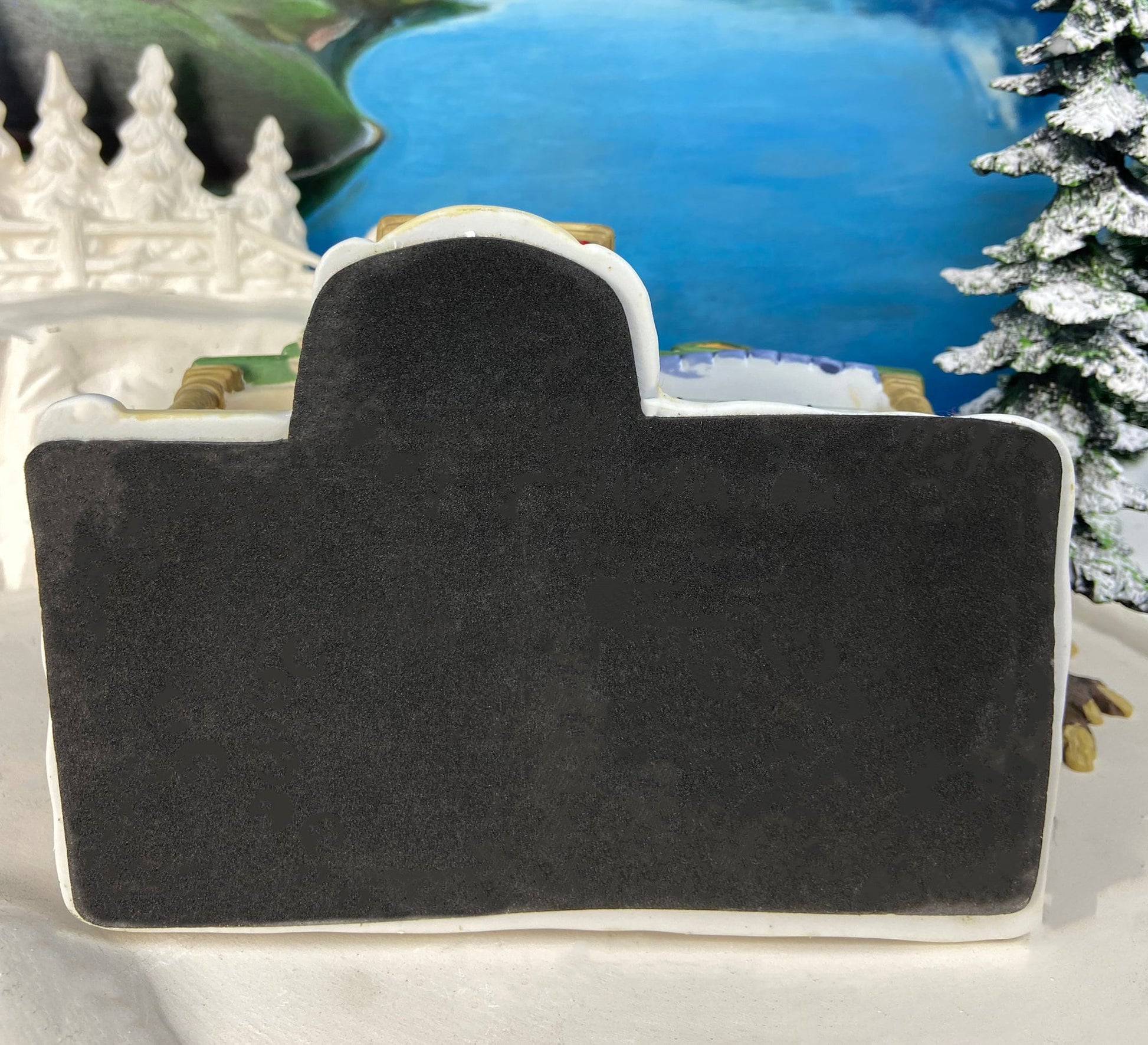 Porcelain Train Station with Clock Tower. Illuminated Christmas Village House. Not Marked by Manufacturer. Holiday Decor. Light Kit Included. The trees and additional accessories in the photo are for presentation only and are not included in the listed price.