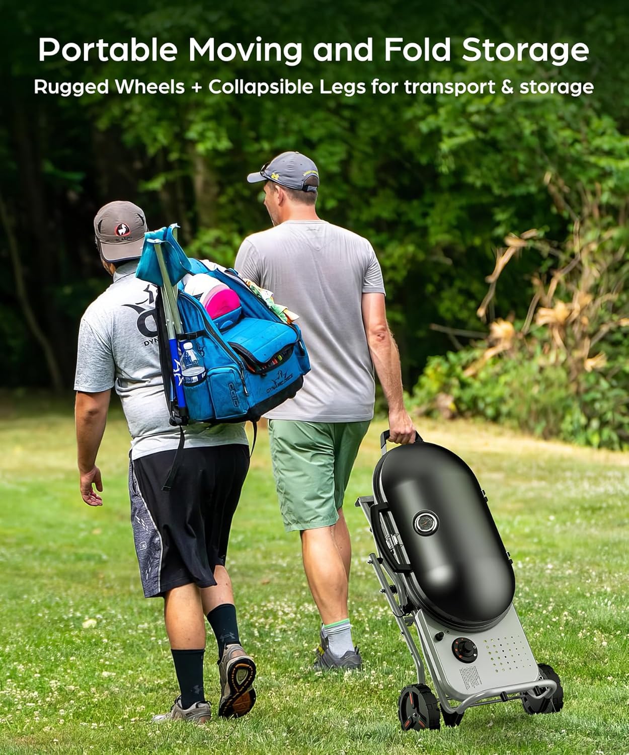 - [ Quickly & Easily Folding ] You can fold propane gas grill in seconds , easy to carry it to anywhere. Folding size : 42 L x 19.7 W x 13.8 H inches, it takes up minimal space and fits perfectly in the trunk of your car. Two directional wheels make it convenient for you to move the portable gas grill within your backyard or patio.
