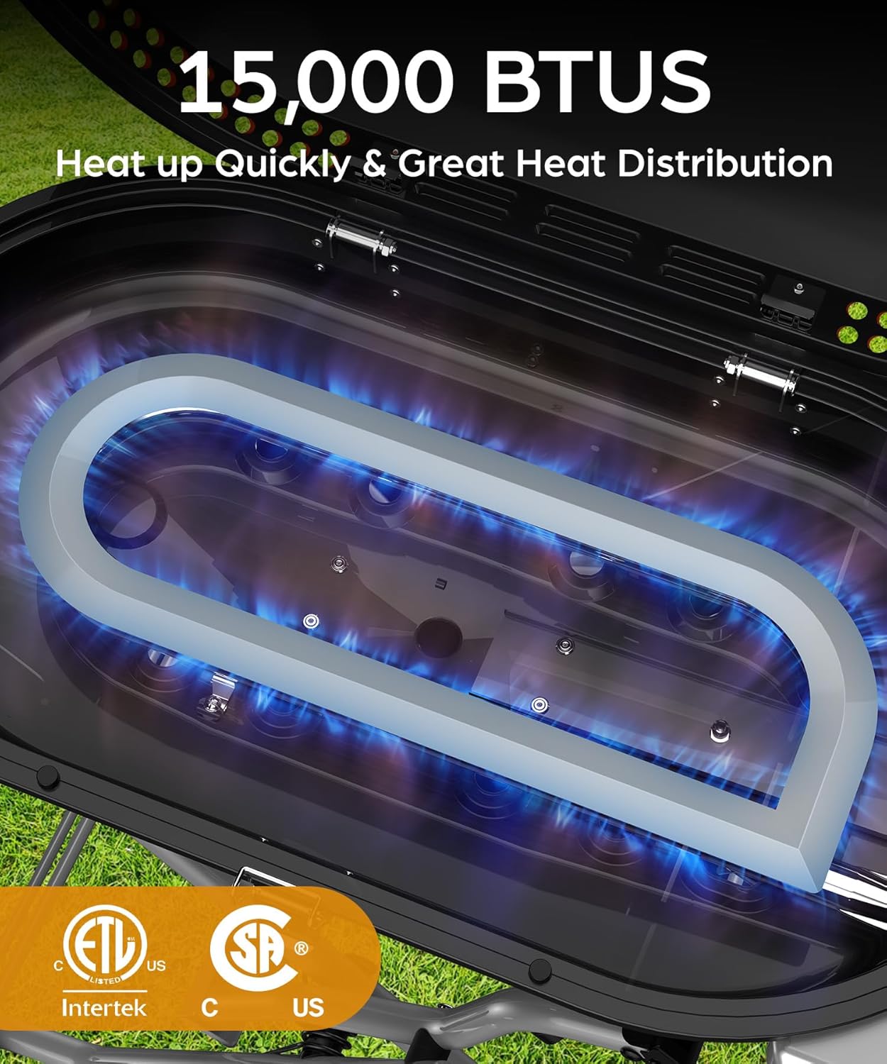 - [ Powerful Heating Fuction ] Kismile Propane Gas Grill’s power is up to 15,000 BTU, heating up fast and evenly distributed, and also the sealed Firebox lid keeps the moisture in the food, so you can enjoy the delicious barbecue time even in bad weather. NOTE *This BBQ gas grill can only use “Propane Fuel” tanks (not included).
