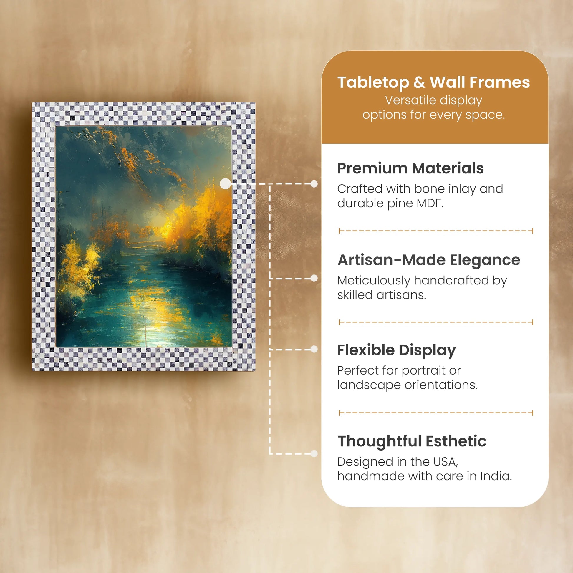 Poster Picture Frame Checkered Pattern Bone Inlay Collection in 3 Sizes