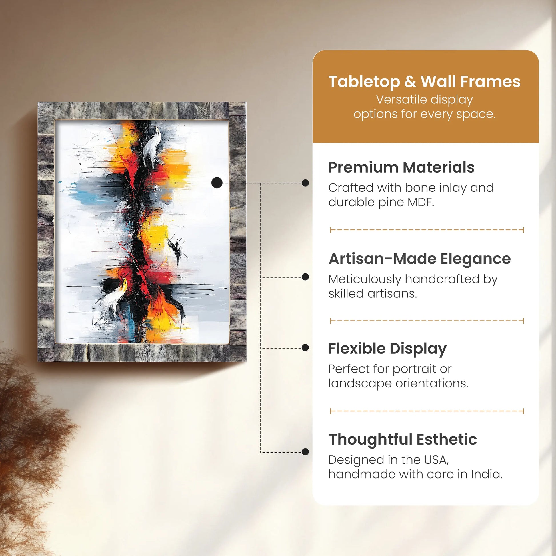 Designer style meets functionality in these photo frames, perfect for boho, modern, and farmhouse decor. Ideal for living rooms, bedrooms, and more.