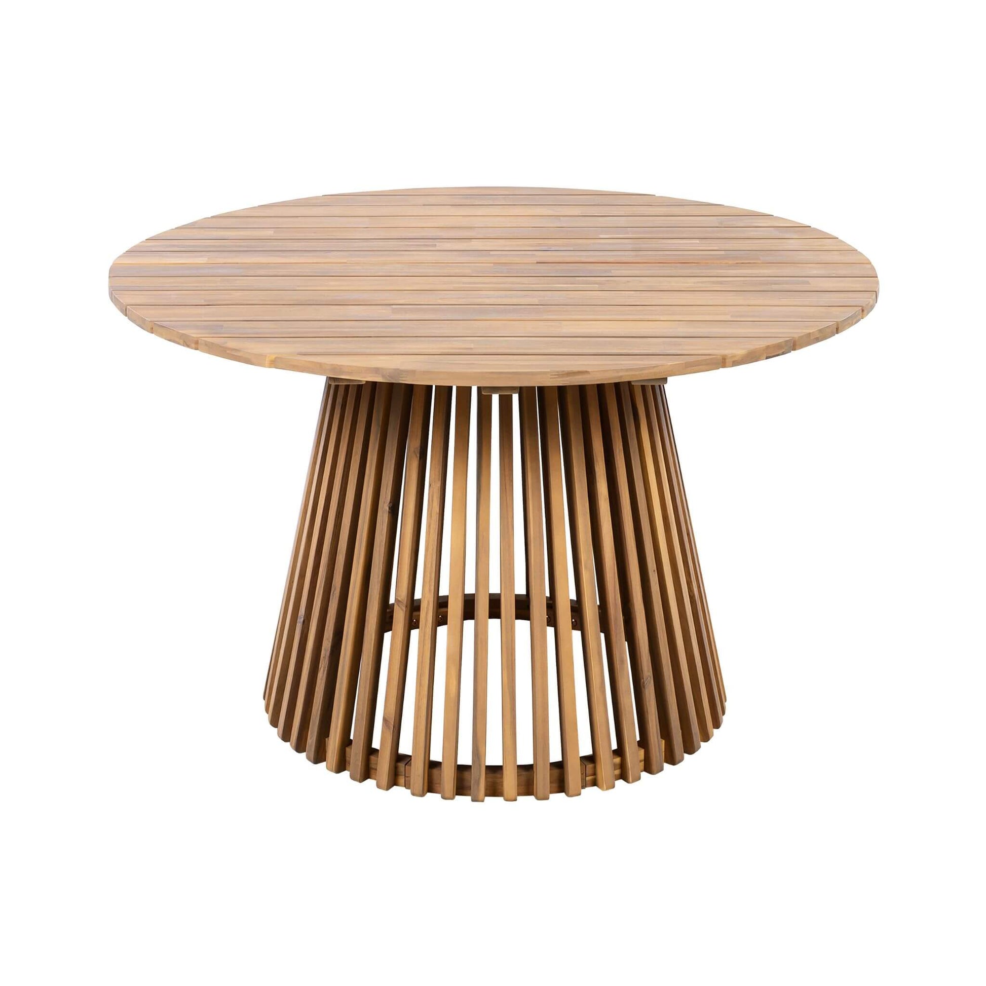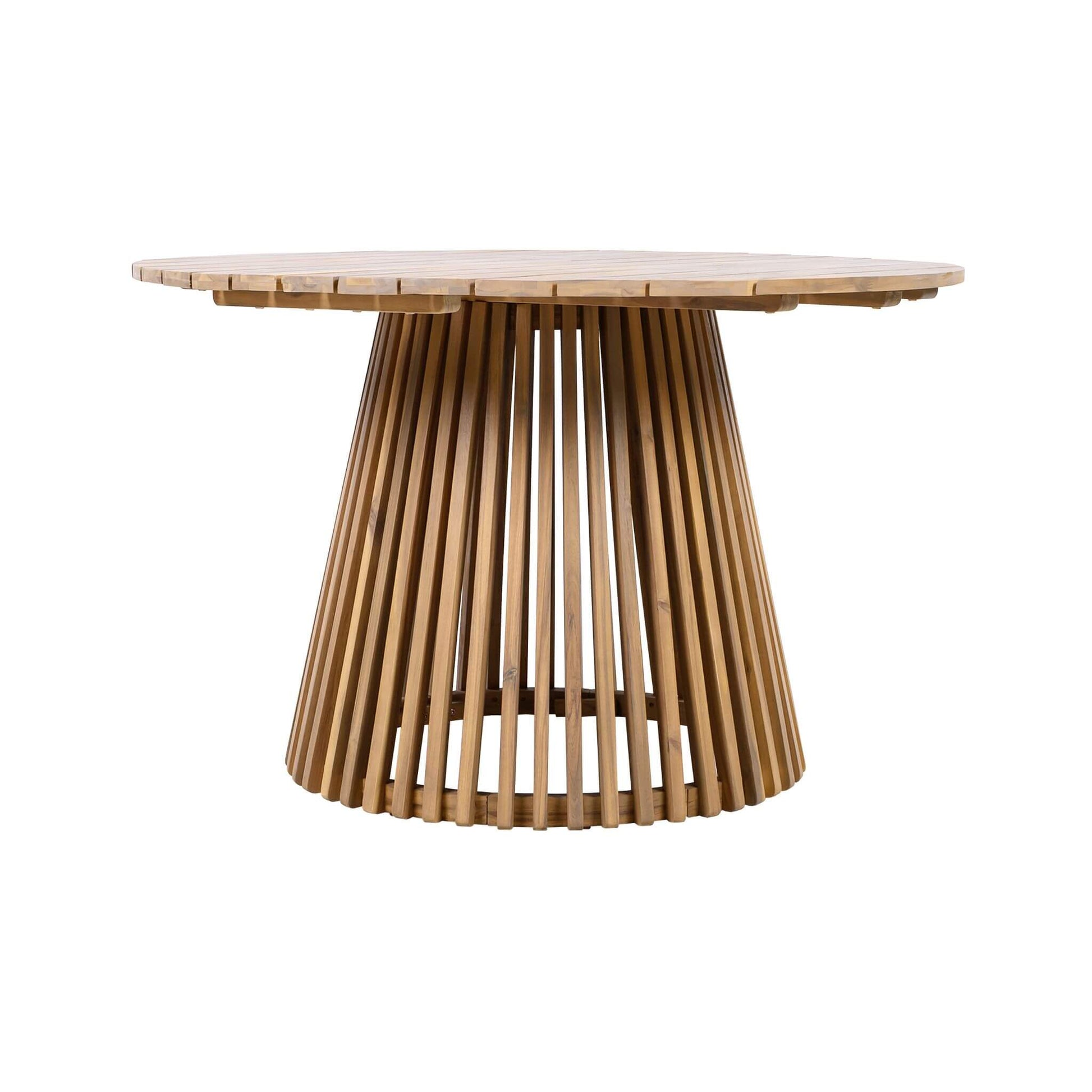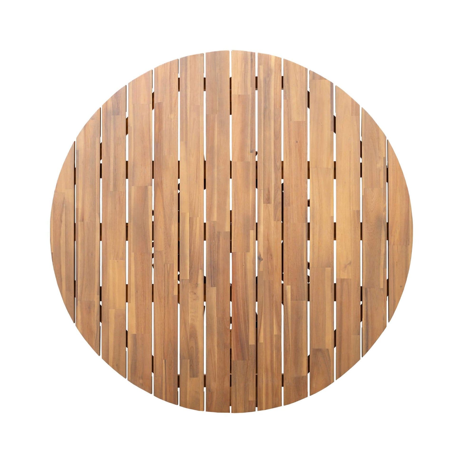 - The 47.25-inch round table features a slatted base that adds style, stability, and prevents water from pooling.