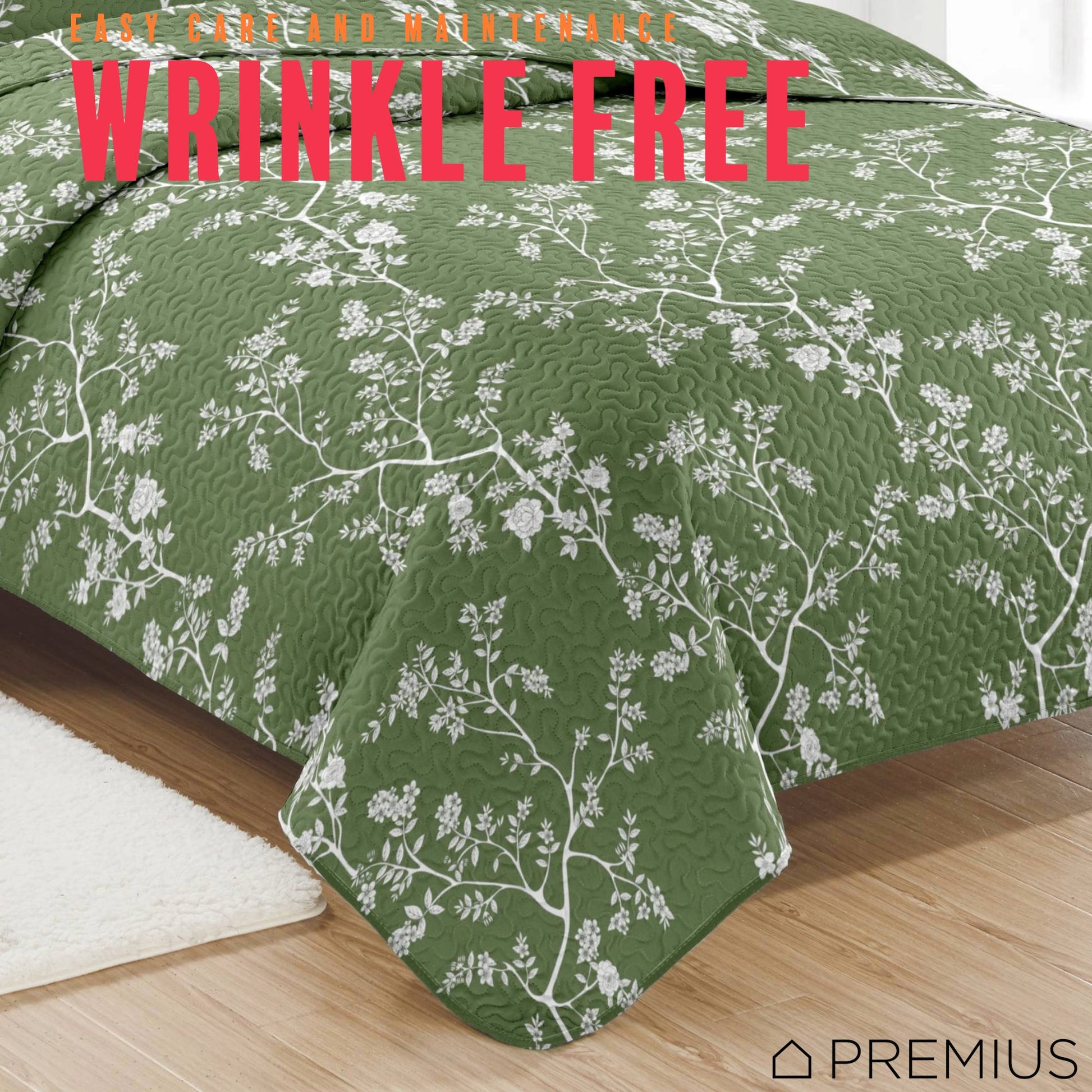 PREMIUS Fernando 3 Piece Microfiber Wrinkle-Free Quilt Set, Green-White