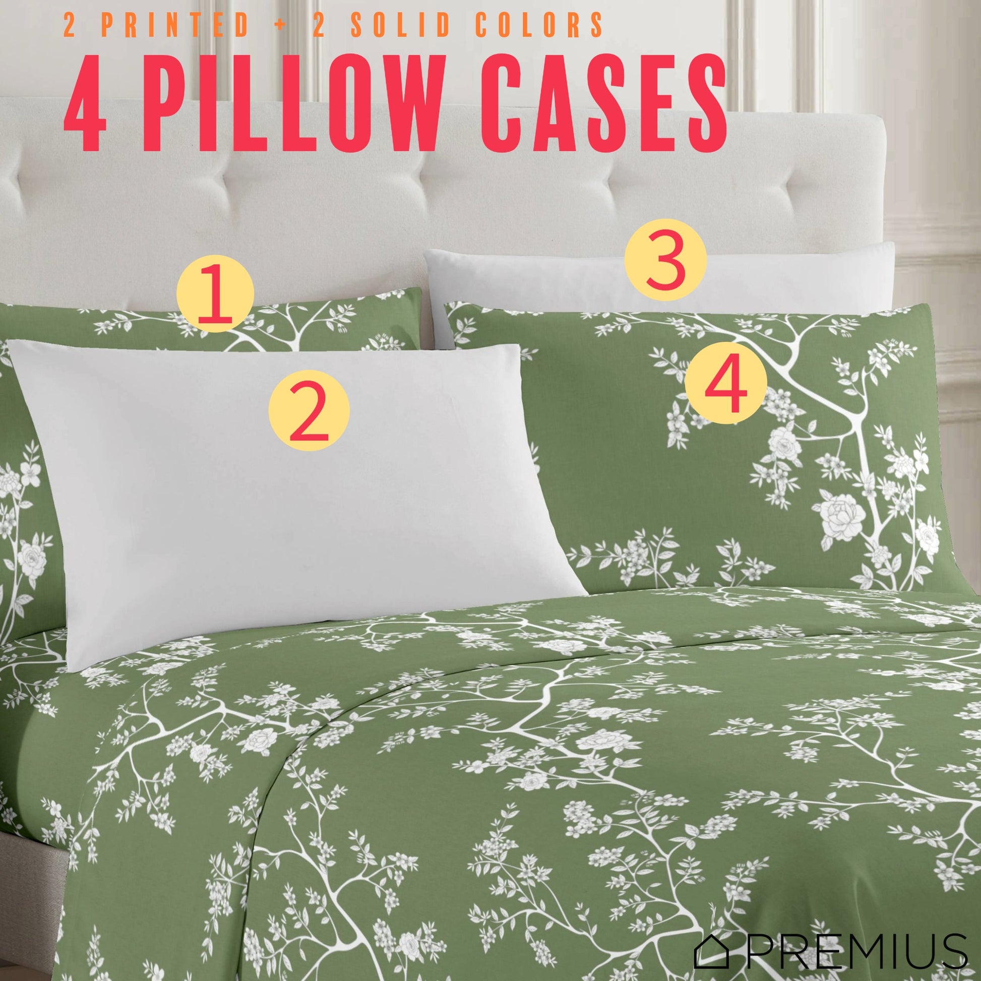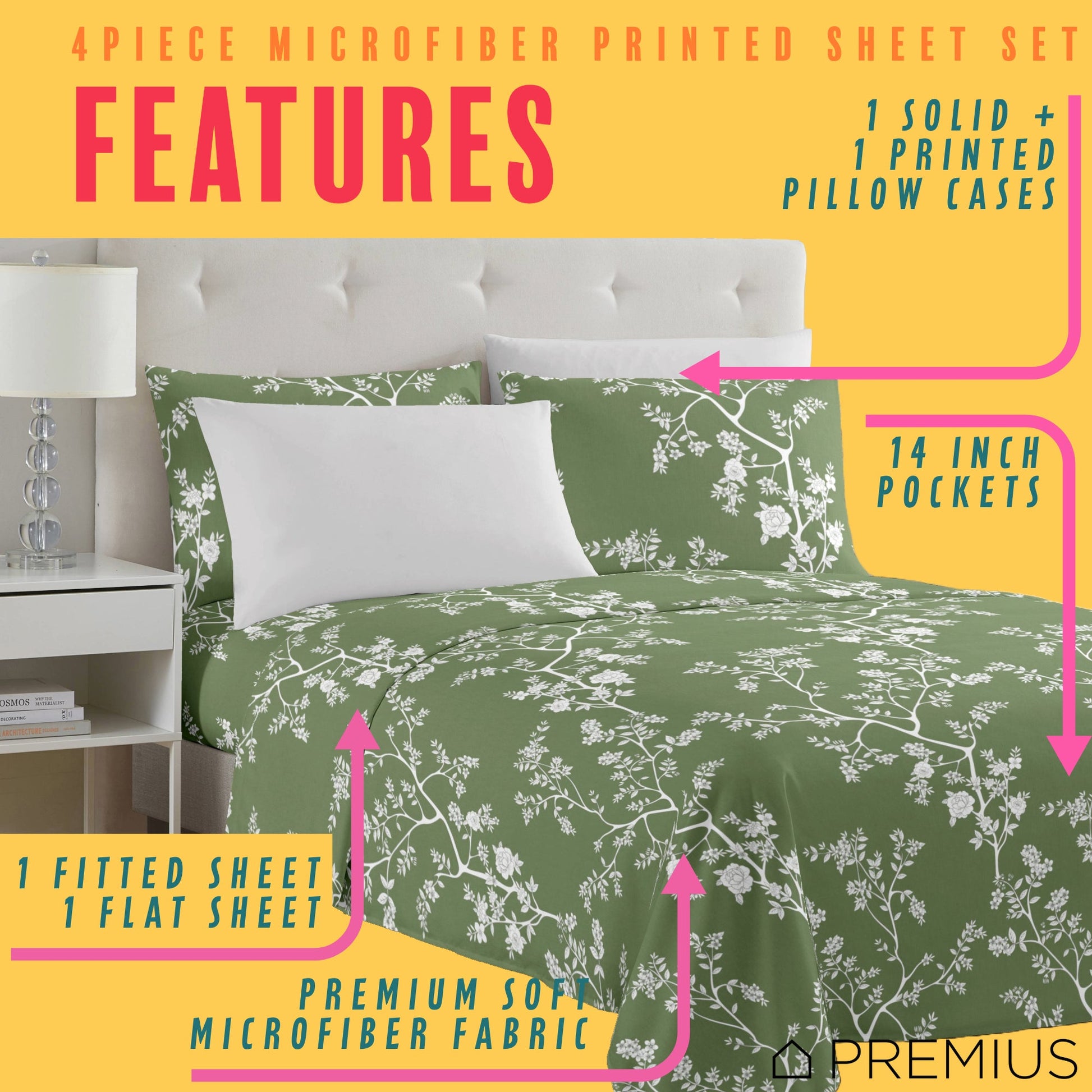 PREMIUS Fernando Soft Wrinkle-Free Microfiber Sheet Set, Green-White