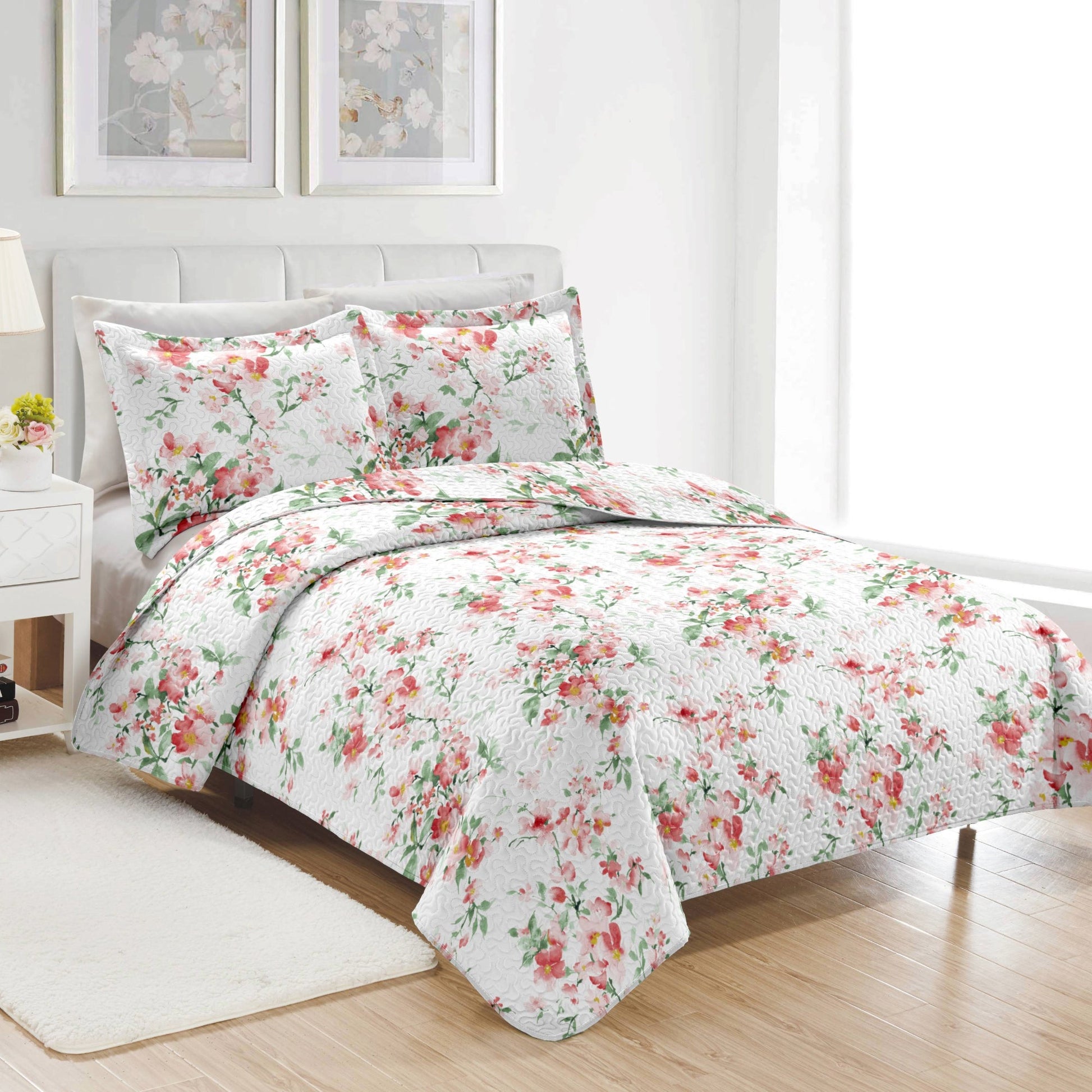 PREMIUS Jennifer 3 Piece Microfiber Wrinkle-Free Quilt Set, White-Red-Green