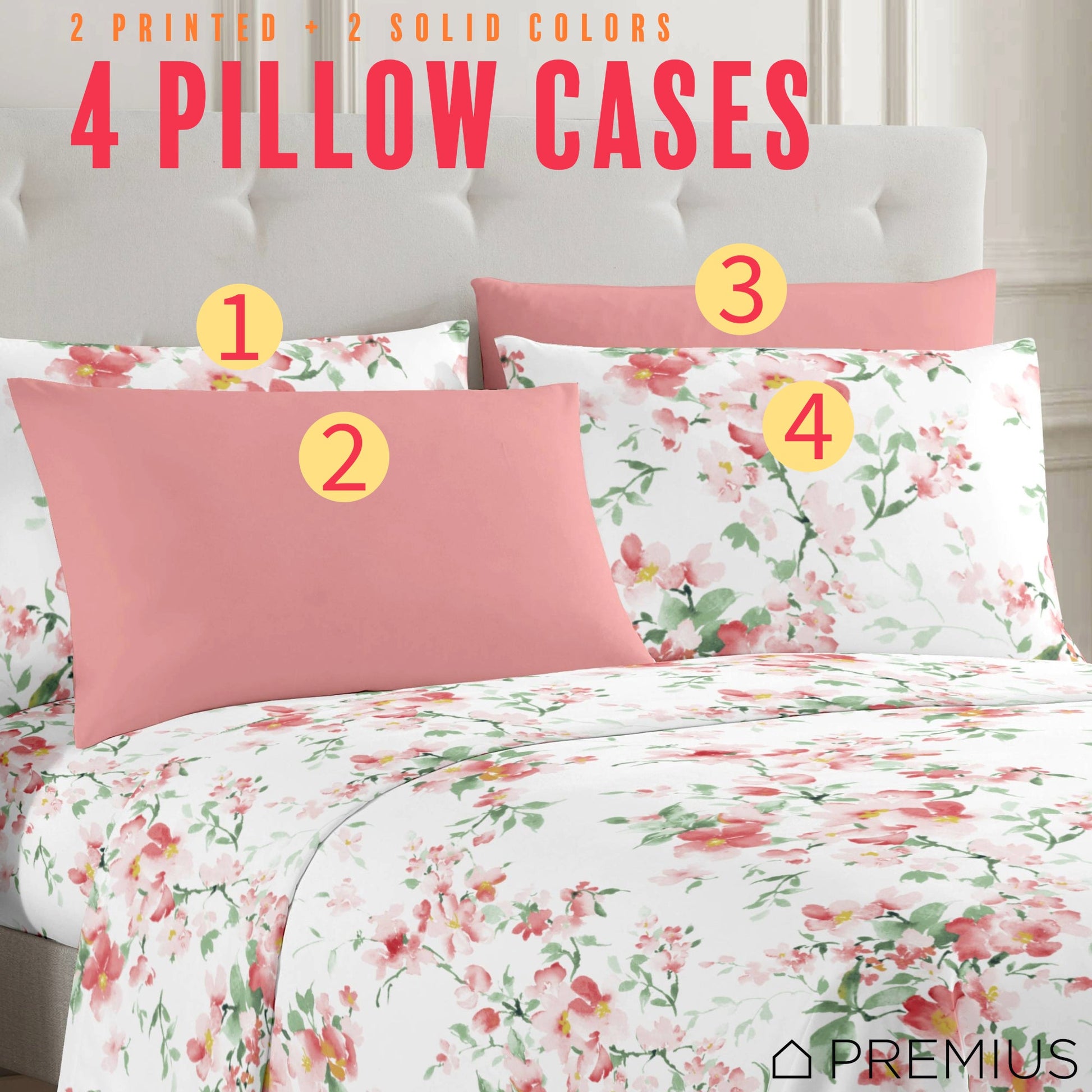 - (4 Piece) Twin Sheet Set: 1 Fitted Sheet, 1 Flat Sheet, 1 Floral Printed Pillow Case, and 1 Solid Color Pillow Case.