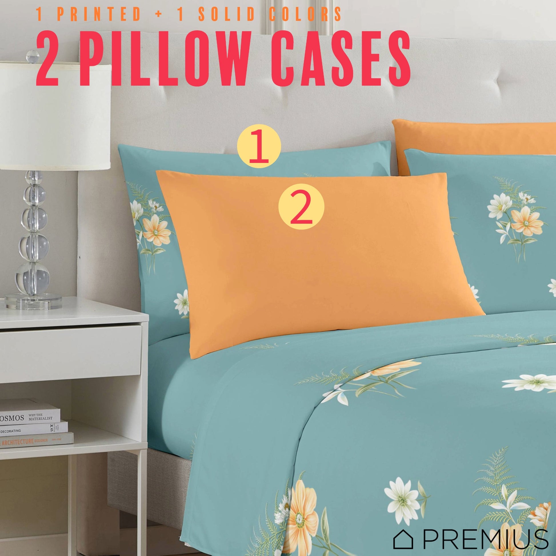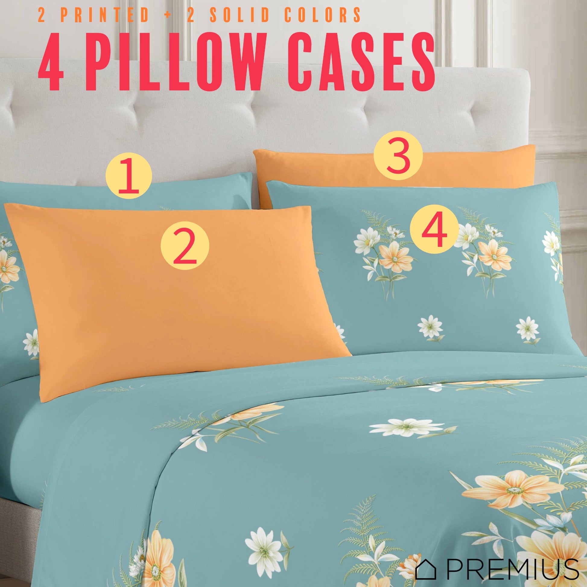 - Set Includes: 1 Flat Sheet, 1 Fitted Sheet, 2 Floral Printed Pillowcases, 2 Solid Color Pillowcases