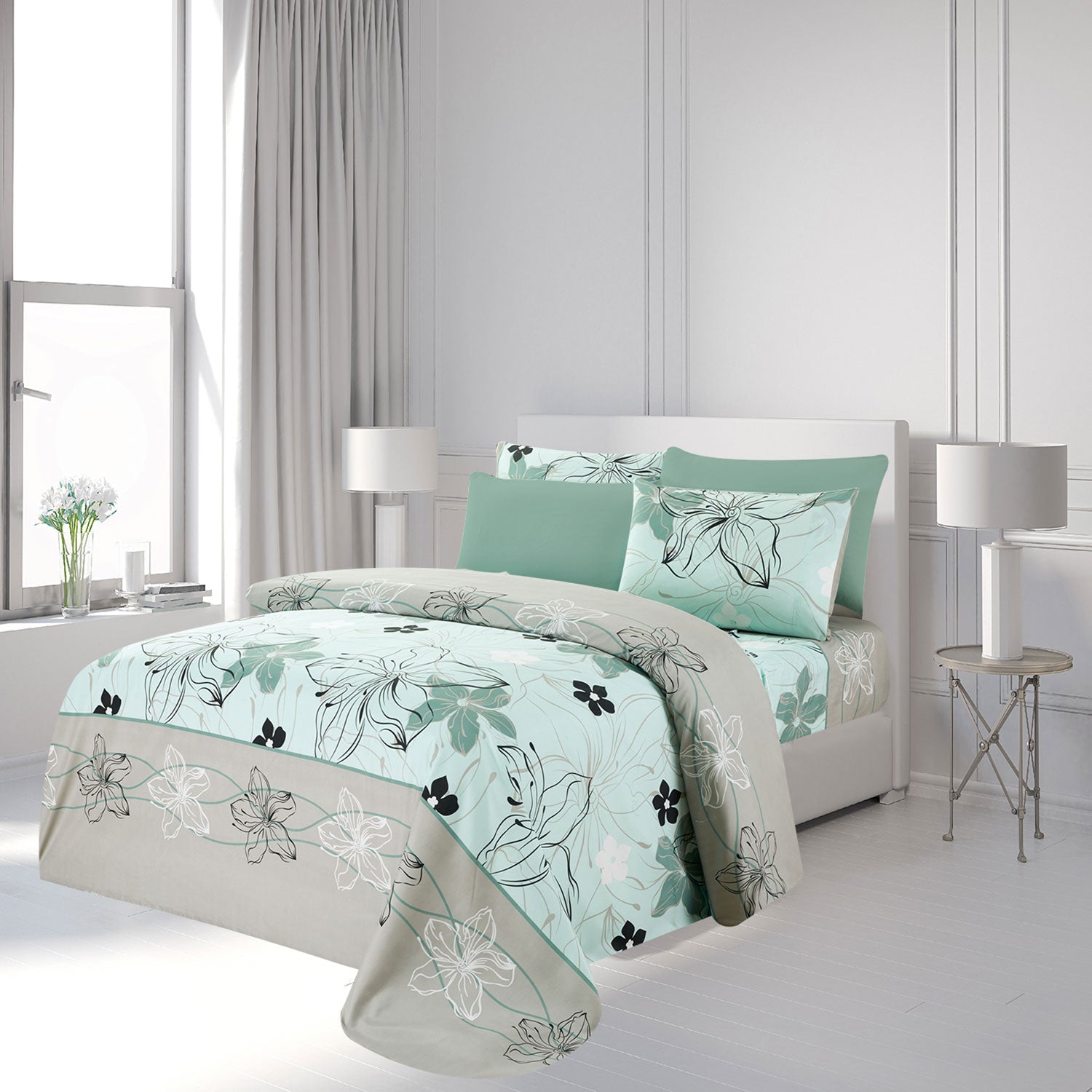 Add a designer accent to any bedroom in your home with the Premius Maya premium luxurious wrinkle-free microfiber sheet set. Perfectly update to bring beauty and grace to any room decor. This super soft and cozy sheet set features beautiful printed floral design with stripes all over the sheet that will bring life into your sleep space. Coordinating shams with flower and stripe design pair beautifully with the sheet set with two extra solid colored pillow cases that completes the ensemble. Comes with a full length flat sheet and a 15 inch deep pocket fitted sheet. This modern printed sheet set is made of incredibly soft and durable 2000 series microfiber fabric. The fabric is durable, breathable, and water repellent. It is resistant to wrinkling, staining, abrasion, or sunlight. This set is also machine washable to promote easy maintenance. The sheet set will make an ideal addition to almost any bedroom decor that embodies timeless style and sophistication. Great for either an adult room, a child bedroom, or a guest room. This super soft sheet set has a look that is sure to add a touch of elegance and a new look to any room. The sheet set will make an ideal addition to almost any bedroom decor that embodies timeless style and sophistication. CARE: Machine wash separately in warm water. Do not bleach. Remove and fold. May require light ironing. SIZE: King. INCLUDES: (1) Fitted Sheet: 78x80+15 Inches, (1) Flat Sheet: 106x102 + 4 Inches, (2) Pillow Shams: 20x40 Inches, (2) Solid Pillow Shams: 20x40 Inches. Queen. INCLUDES: (1) Fitted Sheet: 60x80+15 Inches, (1) Flat Sheet: 90x102 + 4 Inches, (2) Pillow Shams: 20x30 Inches, (2) Solid Pillow Shams: 20x30 Inches. Full. INCLUDES: (1) Fitted Sheet: 54x75+15 Inches, (1) Flat Sheet: 80x96 + 4 Inches, (2) Pillow Shams: 20x30 Inches, (2) Solid Pillow Shams: 20x30 Inches. Twin. INCLUDES: (1) Fitted Sheet: 39x75+15 Inches, (1) Flat Sheet: 66x96 + 4 Inches, (1) Pillow Sham: 20x30 Inches, (1) Solid Pillow Sham: 20x30 Inches. MATERIAL: Microfiber Polyester. COLOR: Aqua-Taupe