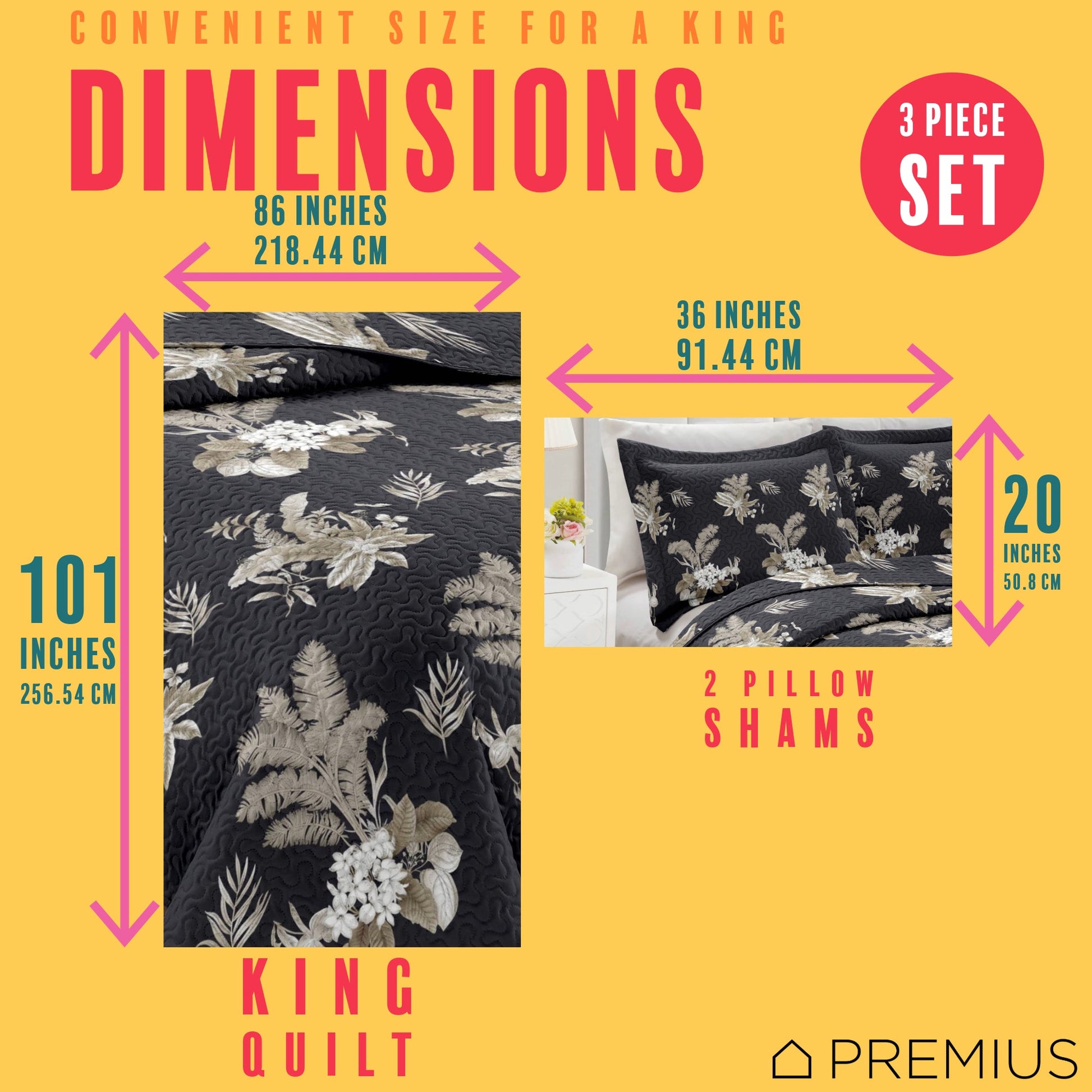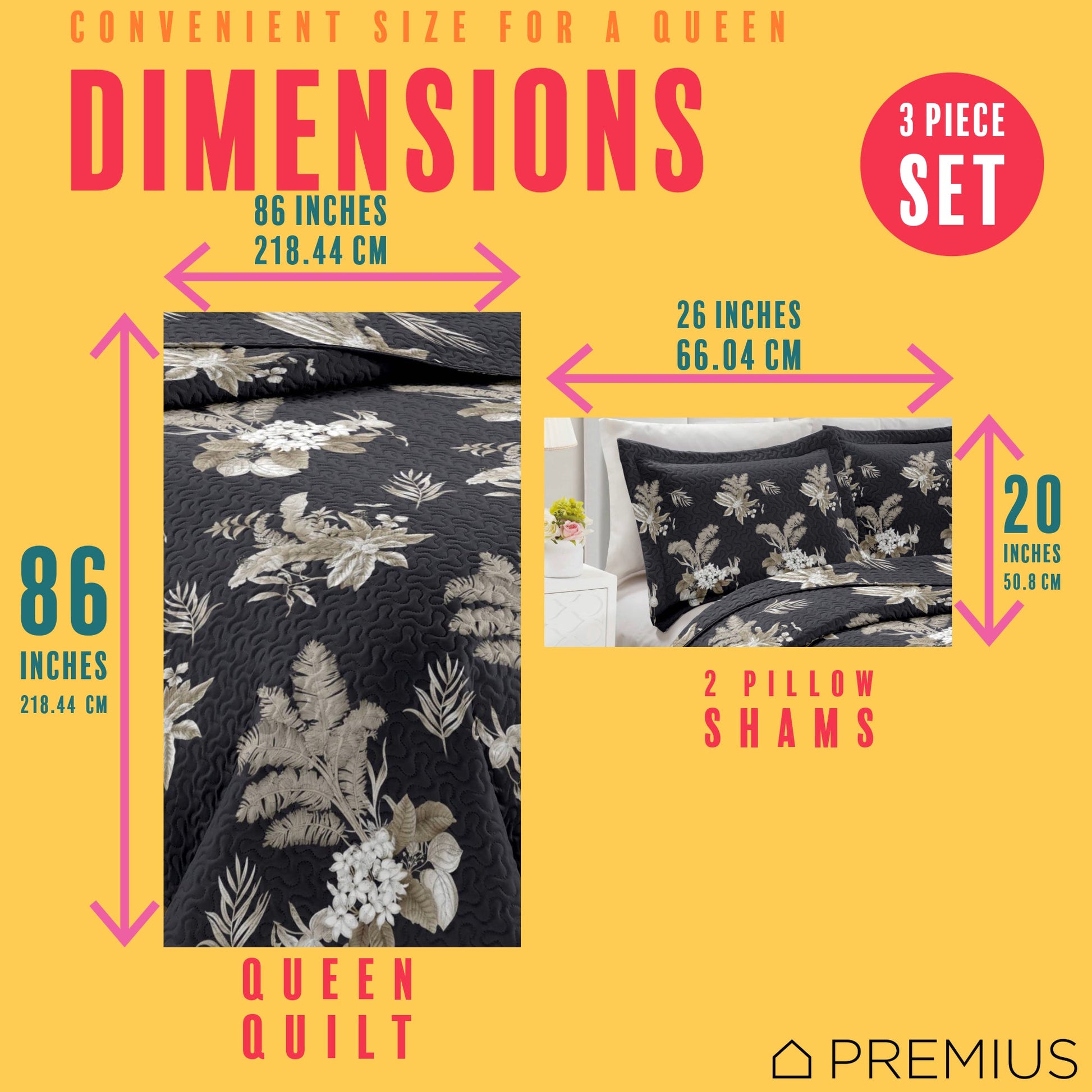 Unleash Your Inner Floraphile with the PREMIUS Mia Quilt Set! Transform your bedroom into a blooming paradise with the PREMIUS Mia 3-Piece Microfiber Quilt Set. Featuring a captivating taupe floral bouquet design on black background, this set infuses your sleep sanctuary with a touch of nature's beauty.