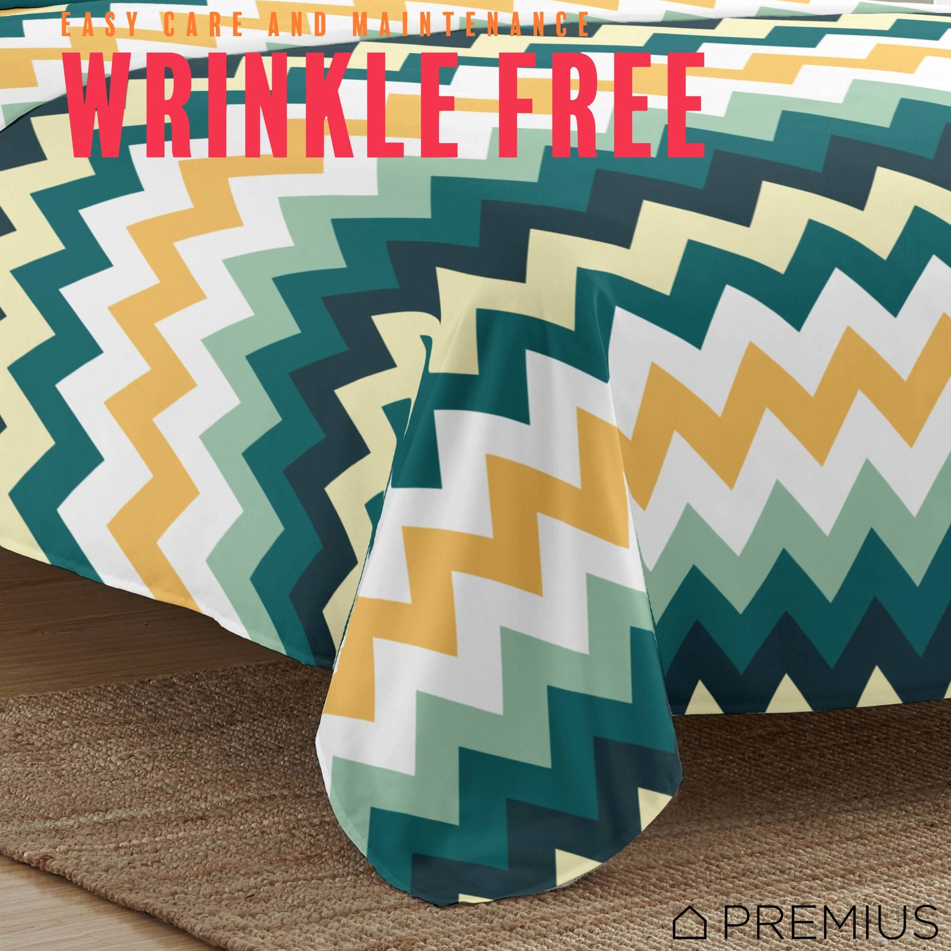 Inject a burst of energy into your bedroom with the PREMIUS Montego sheet set. Crafted from ultra-soft microfiber polyester, these sheets offer a cloud-like feel that's perfect for a restful night's sleep. The eye-catching chevron pattern, featuring a vibrant blend of teal, yellow, cream, and green, creates a playful and modern atmosphere.
