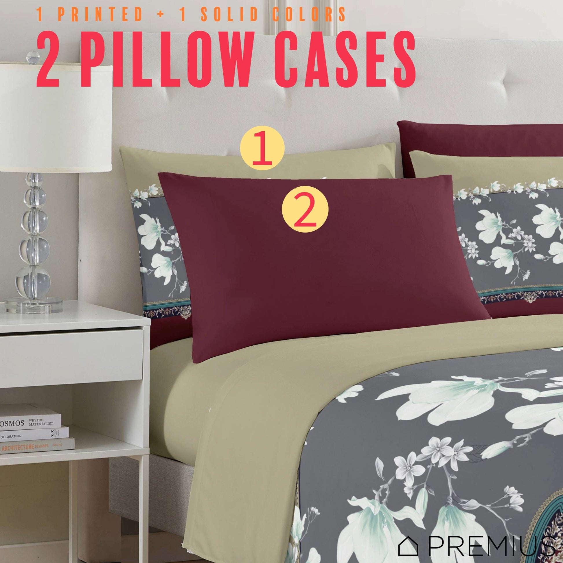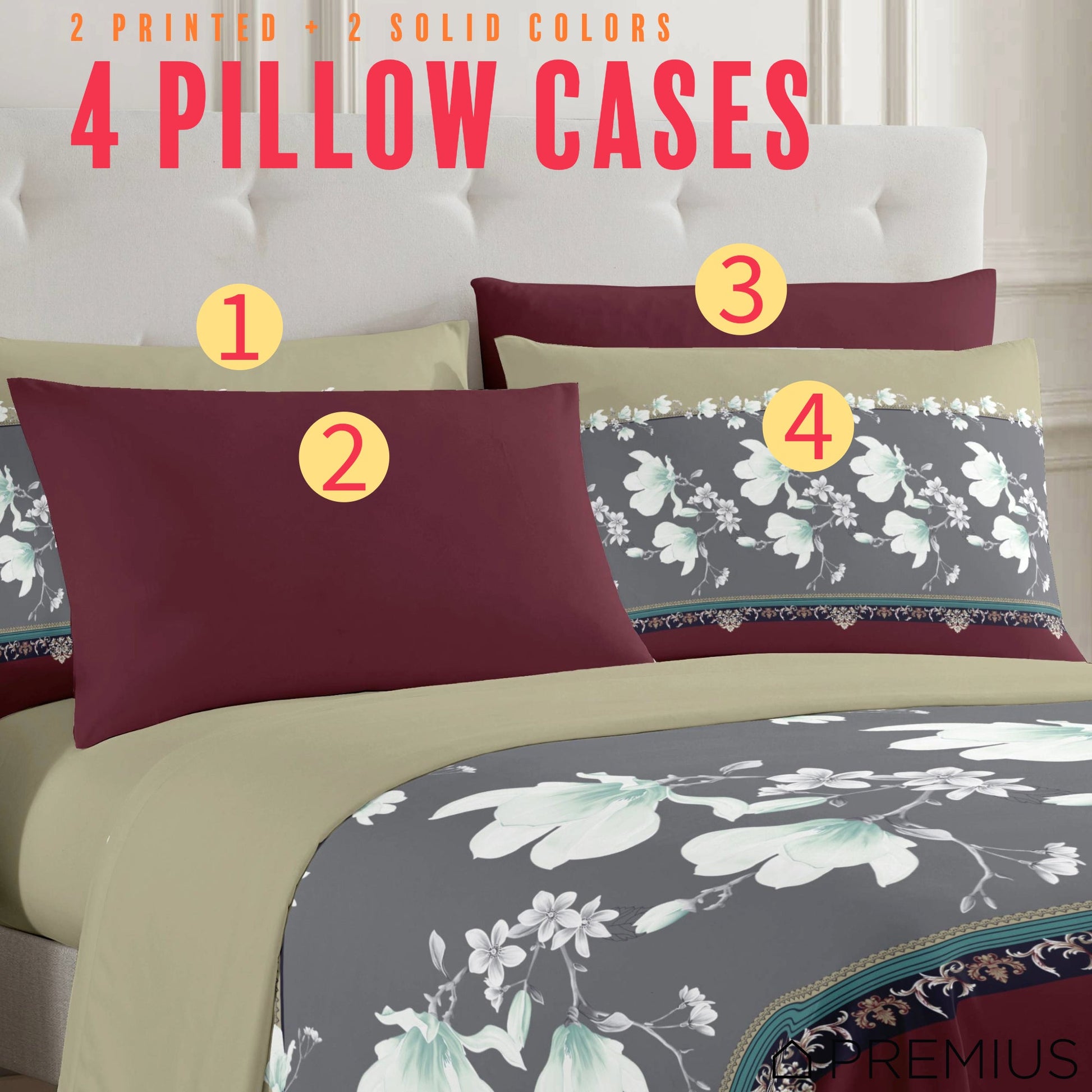 - Set Includes: 1 Flat Sheet, 1 Fitted Sheet, 2 Floral Printed Pillowcases, 2 Solid Color Pillowcases