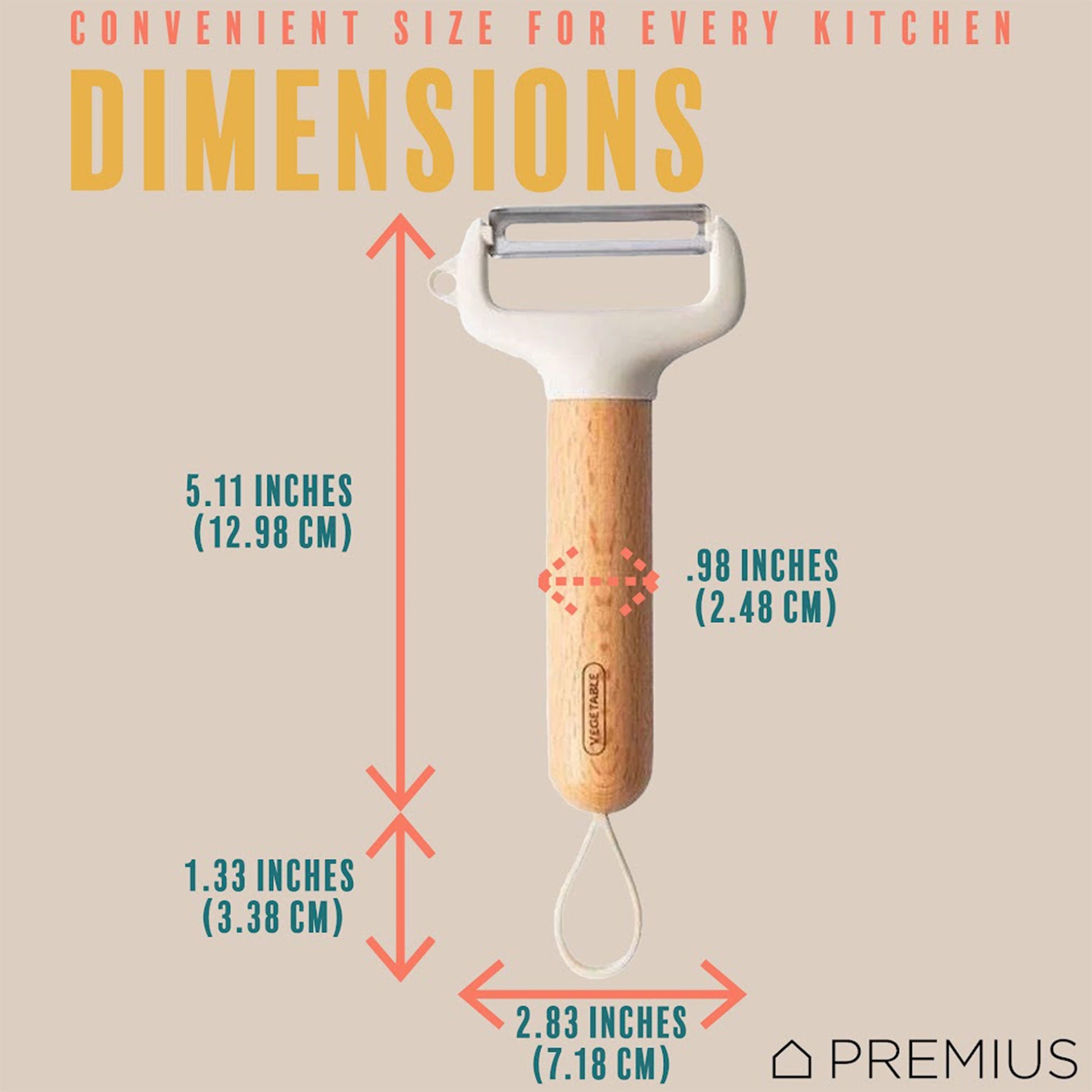 PREMIUS Wooden Vegetable Stainless Steel Blades Peeler with Potato Eyer, White-Natural