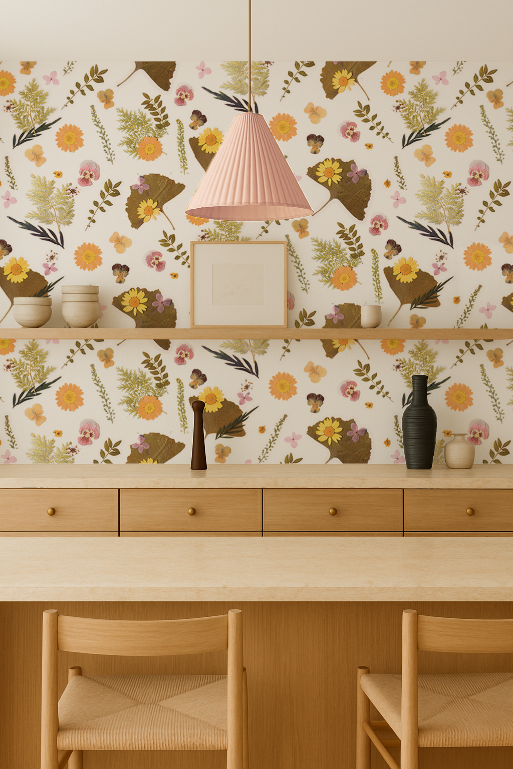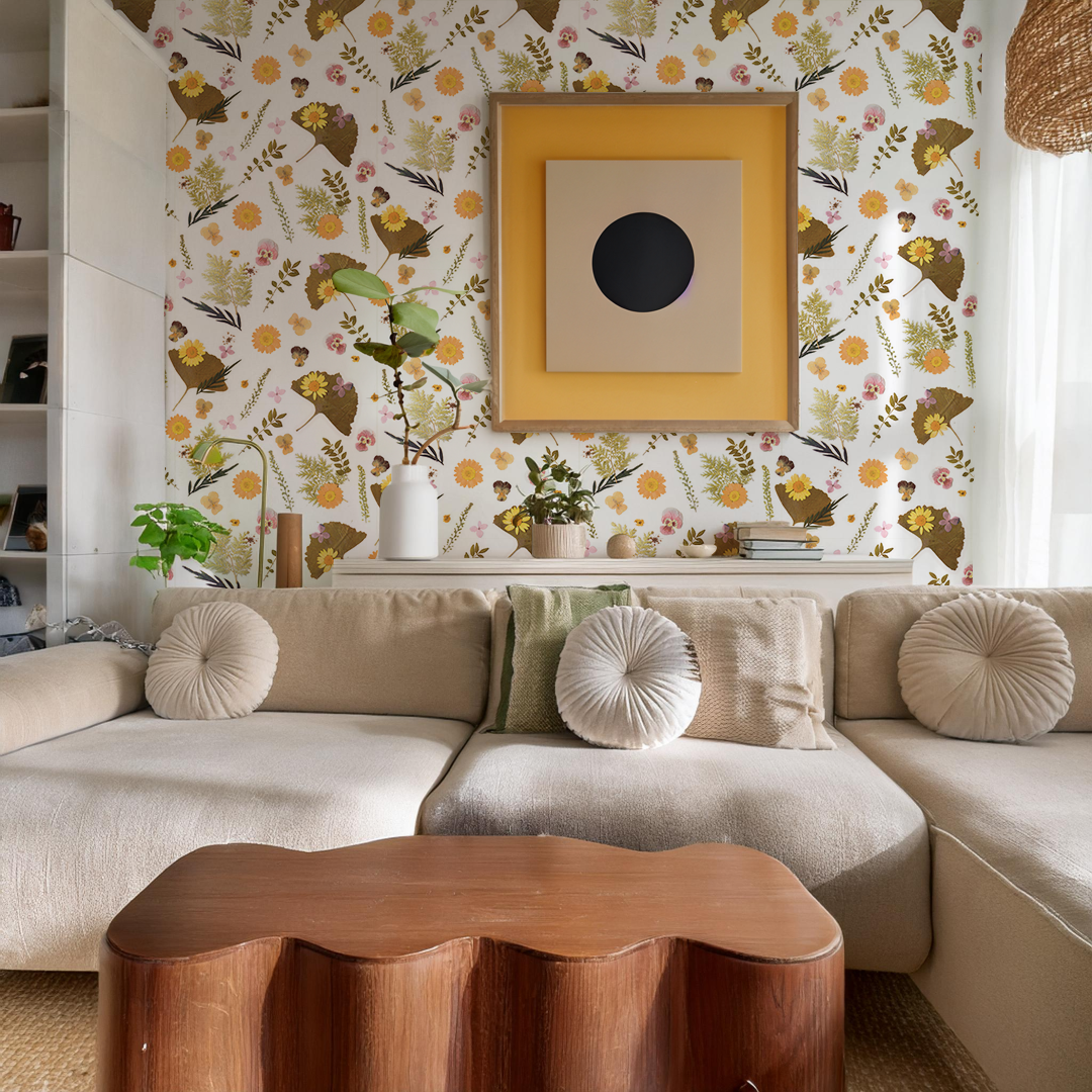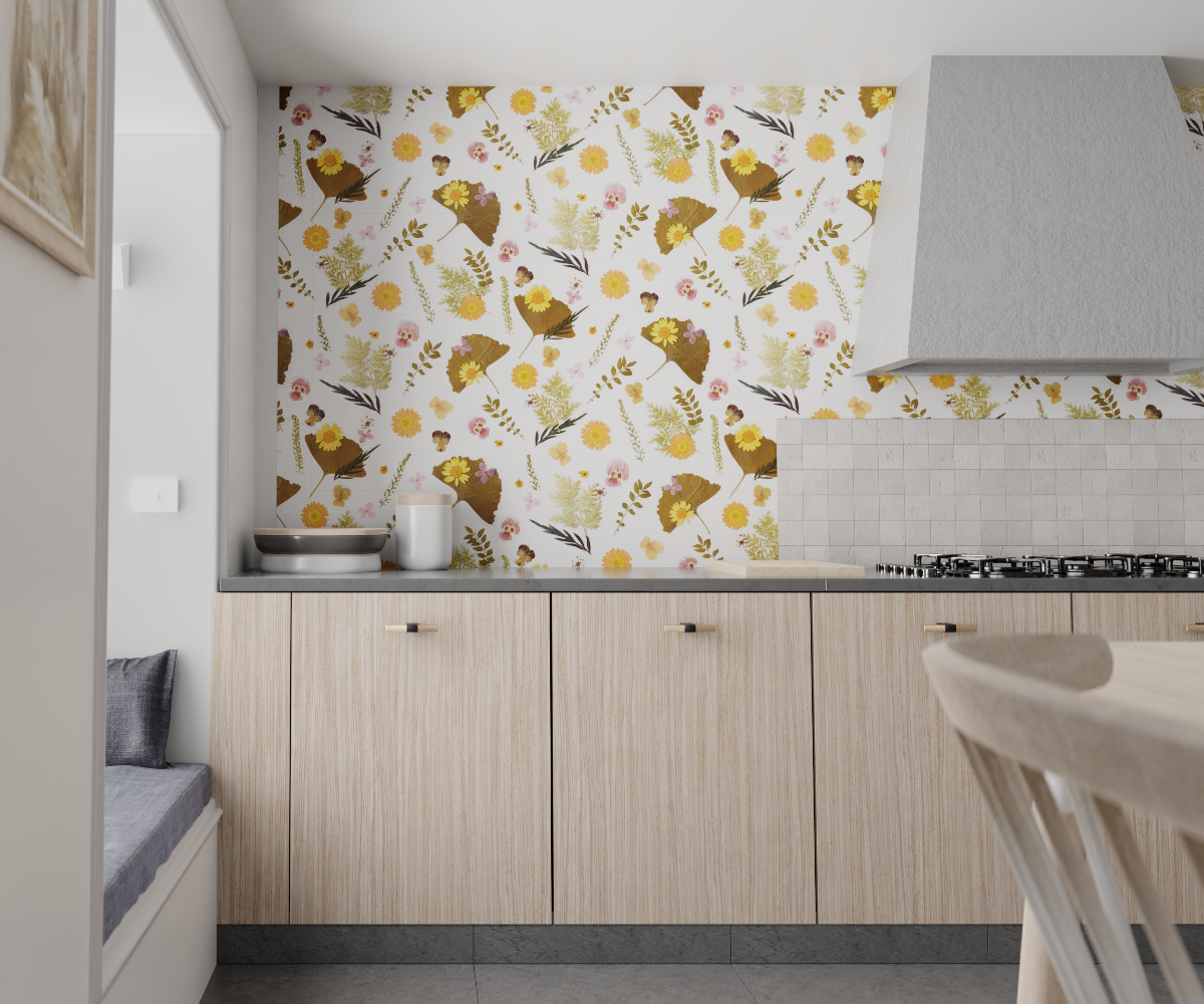 Experience the beauty of nature with Pressed Fresh Version 01 Wallpaper. Crafted from dried flowers arranged by Samantha, this artwork adds a touch of spring to any space. With both peel and stick vinyl and traditional pasted options, installation is a breeze. And when you're ready for a change, it's easily removable. Elevate your walls with this unique and exclusive design.