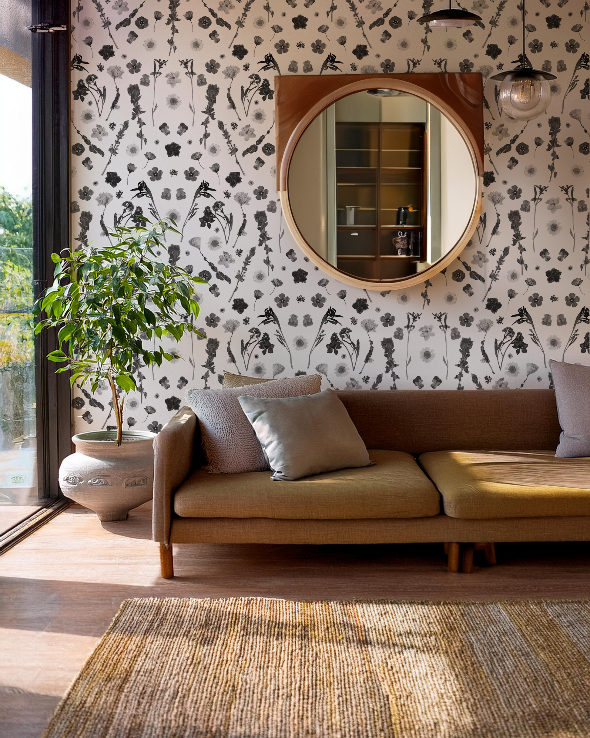 Experience the beauty of nature with Pressed Fresh Version 02 Wallpaper. Crafted from dried flowers arranged by Samantha, this artwork adds a touch of spring to any space. With both peel and stick vinyl and traditional pasted options, installation is a breeze. And when you're ready for a change, it's easily removable. Elevate your walls with this unique and exclusive design.