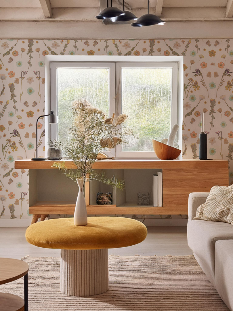 Experience the beauty of nature with Pressed Fresh Version 02 Wallpaper. Crafted from dried flowers arranged by Samantha, this artwork adds a touch of spring to any space. With both peel and stick vinyl and traditional pasted options, installation is a breeze. And when you're ready for a change, it's easily removable. Elevate your walls with this unique and exclusive design.