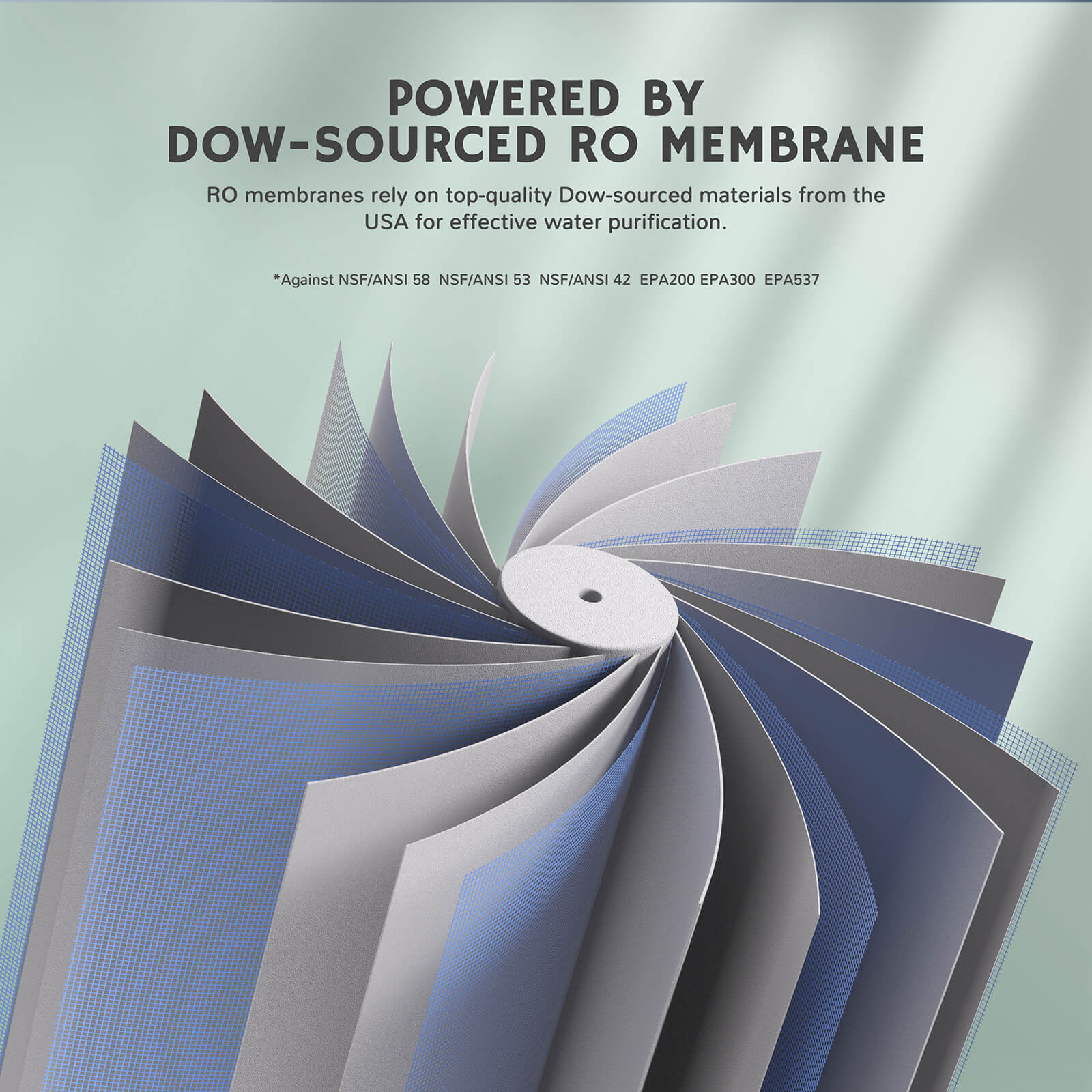 Against NSF/ANSI 58, 53, and 42 standards, as well as EPA 200, 300, and 537 regulations. Harnessing the power of a 5-stage filtration system—1 RO and 1 PCB—combined with PP - carbon - 0.0001 micron RO - carbon - PP, our system eradicates 99% of common tap water pollutants and impurities.