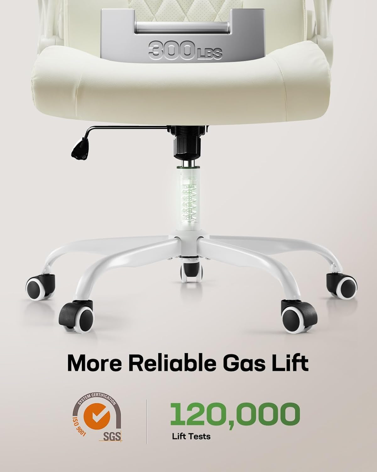 - Oversized 27.6" base plus a SGS-certified gas lift deliver maximum stability and a weight capacity of up to 300 lbs.