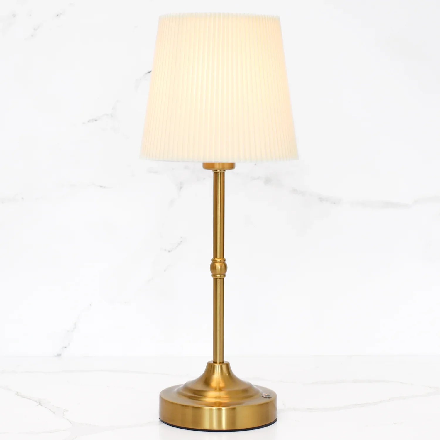 This sleek gold LED lamp offers the perfect blend of modern design and functional lighting. Featuring a rechargeable battery and touch-sensitive controls, it casts a soft, warm glow with adjustable brightness. Ideal for bedside tables, desks, or outdoor evenings, the cordless design makes it easy to move and style anywhere you need light.