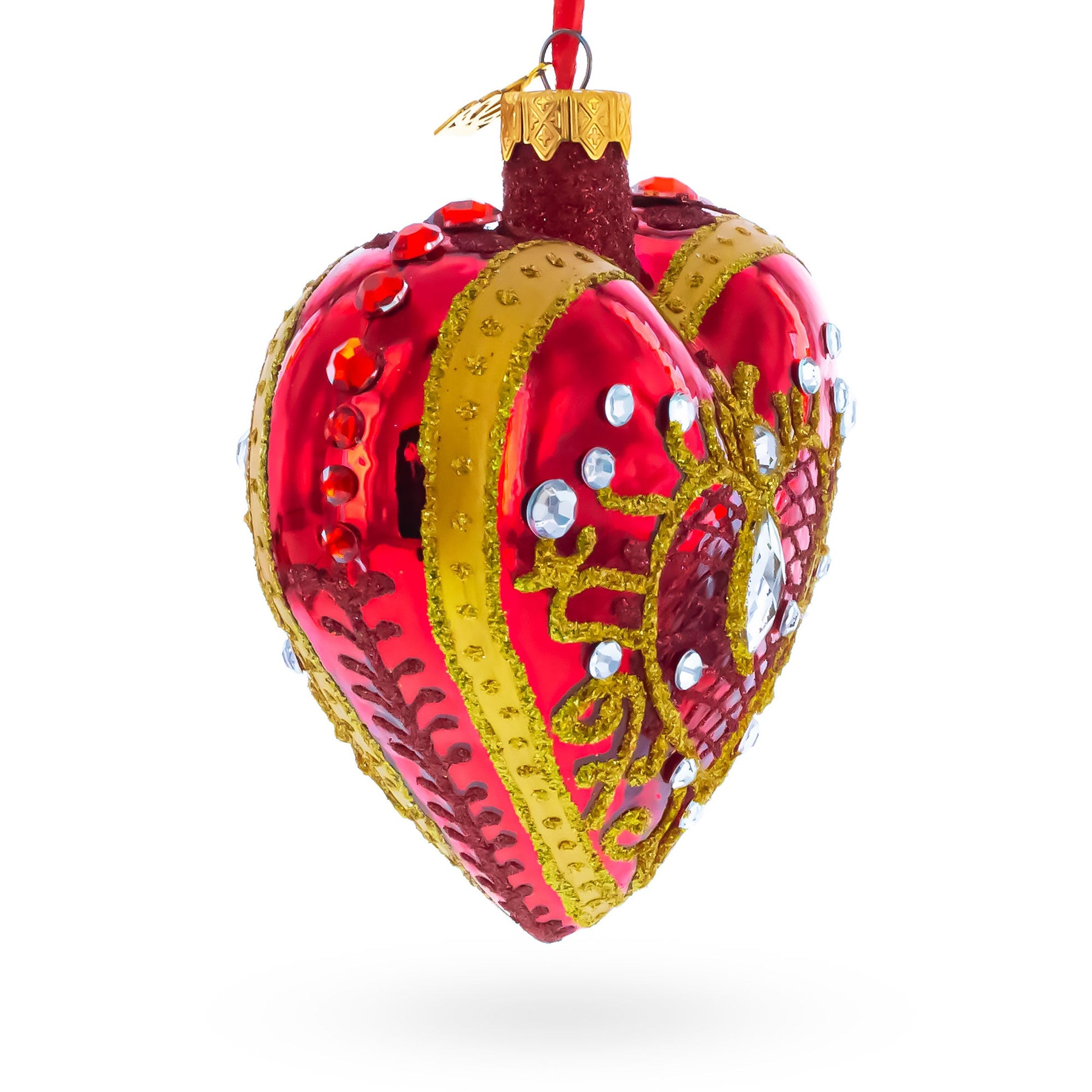 This exquisite glass heart ornament brings a touch of romance and elegance to your holiday décor. Handcrafted with shimmering glitter, sparkling gemstones, and intricate detailing, it captures the light beautifully. Perfect for celebrating love and warmth during the festive season, this collectible ornament is a timeless addition to any ornament collection. Its classic heart shape makes it ideal for gifting or treasuring as a keepsake for years to come.