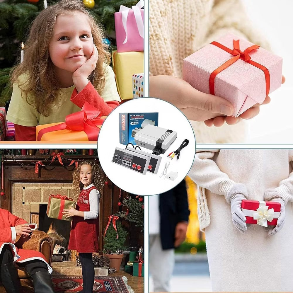 Relive the golden age of gaming with this retro mini console, featuring 620 classic 8-bit games. Ideal for both kids and adults, it offers easy AV setup, two controllers, and a simple plug-and-play interface. This console is perfect for sharing nostalgic gaming experiences or introducing classic titles to a new generation, making it a timeless gift choice for any occasion.