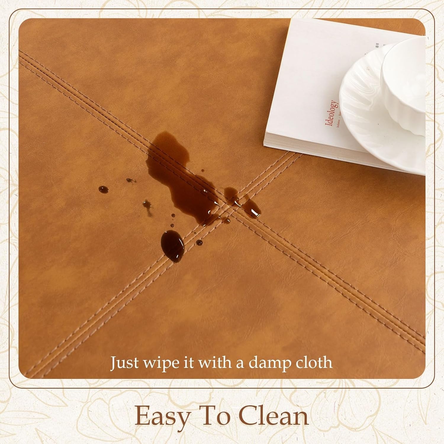 - Midnight Brown vegan leather upholstery is durable, easy to clean, and resistant to everyday spills.